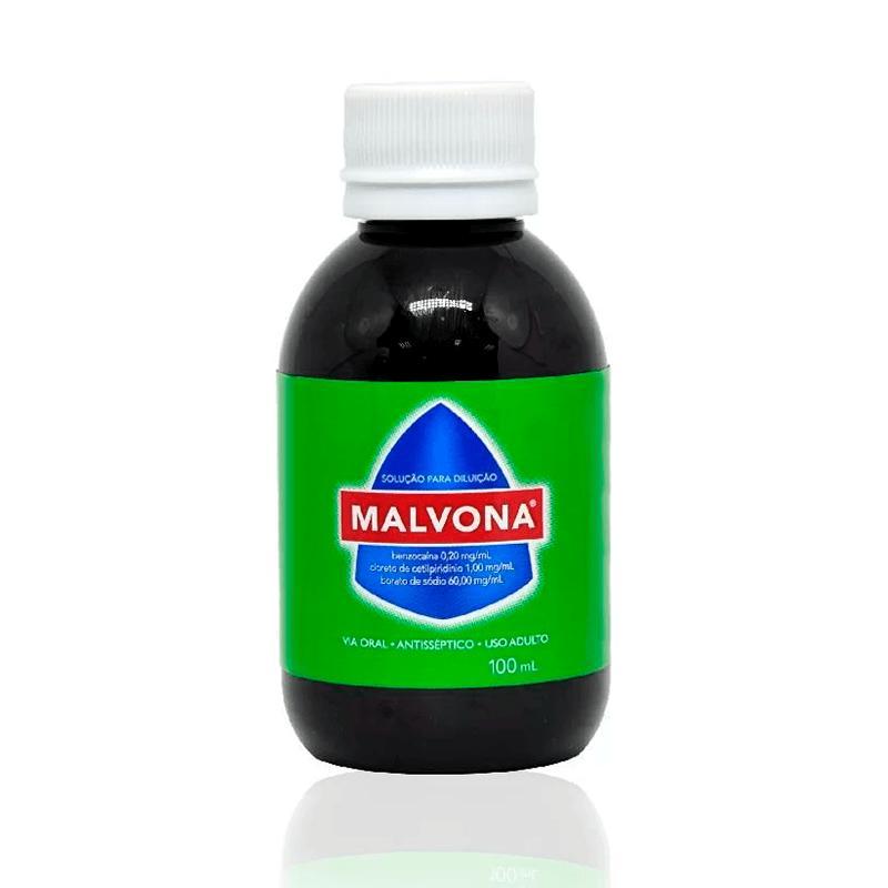 Solução para Diluição Malvona 100ml Malvona é uma solução para Diluição, composto por Benzocaína 0,20mg/ml, cloreto de cetilpiridínio 1,00mg/ml, boraro de sódio 60,00mg/ml. Malvona deve ser utilizada exclusivamente por via oral, através de bochechos ou gargarejos. Portanto, não deve ser ingerida. Diferenciais do Malvona: Rápido Alívio para: - Dor de Garganta - Afecções de Boca - Aftas.
