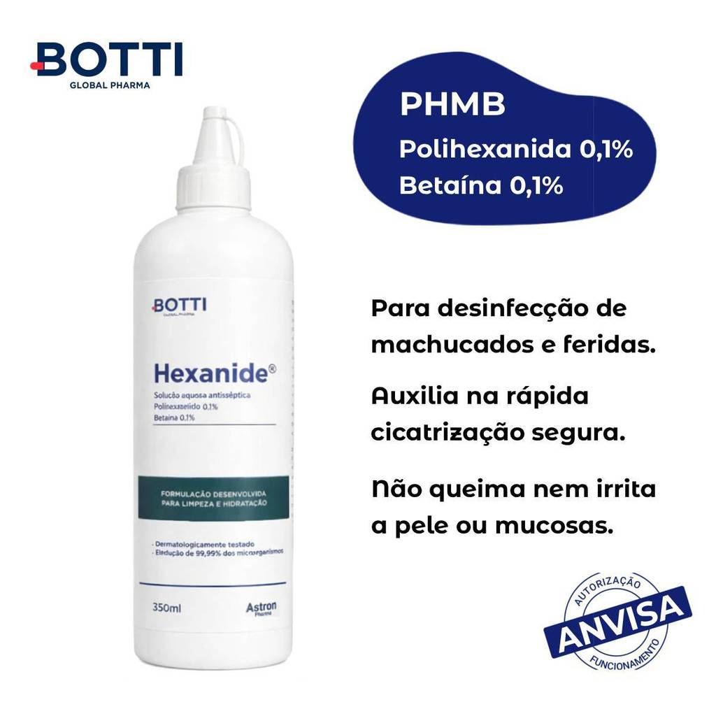 Solução Aquosa PHMB 0,1% Hexanide 350ml 2Un Botti Pharma