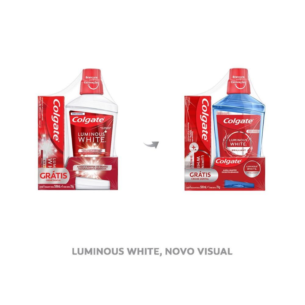 Solução Bucal Colgate Luminous White Brilliant Sem Álcool 500ml e Ganhe 1 Creme Dental 70g