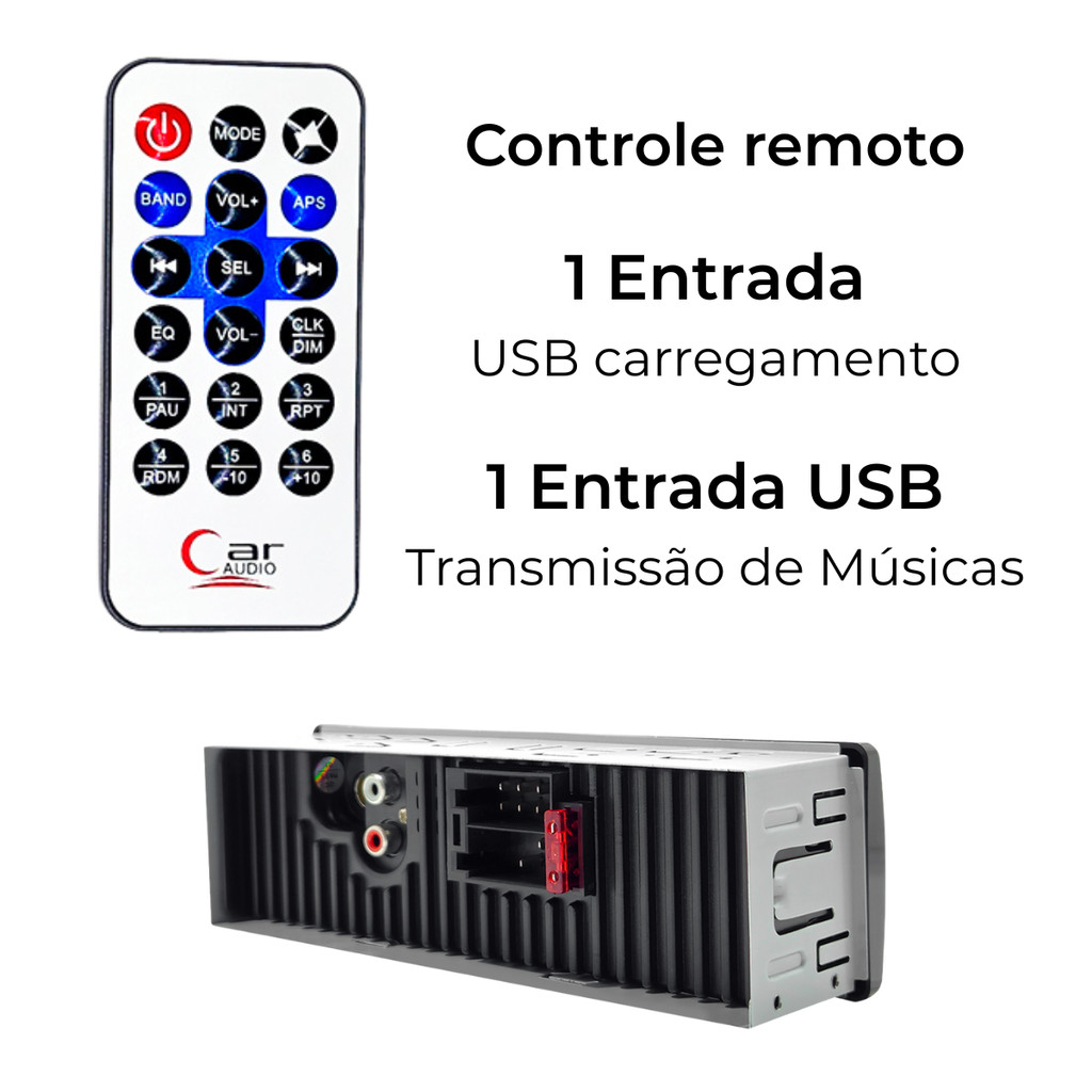 Som Automotivo Bluetooth H-Tech HT-1023 MP3 Player Rádio Fm Usb Controle Remoto SD Card MP3 Player Automotivo H-Tech HT-1023 Bluetooth USB SD Card é um rádio veicular compacto e funcional, ideal para quem quer conectividade e música no carro sem complicação. Ele toca seus arquivos favoritos via Bluetooth, pendrive USB, cartão SD ou rádio FM, e vem com controle remoto para ajustar volume, trocar faixas e configurar estações com praticidade. Com display claro e botões intuitivos, o HT-1023 oferece som direto, fácil instalação e suporte aos principais formatos de áudio, tornando-o uma opção acessível e eficiente para melhorar o entretenimento do seu veículo. O que acompanha o MP3 Player Rádio Automotivo H-Tech HT-1023? - 1 Rádio Automotivo - 1 Conector 16 vias - 1 Controle Remoto - Manual do Usuario Especificações Técnicas do Rádio Automotivo H-Tech HT-1023: - Potência: 4x25W RMS - Equalização: POP/ROCK/CLASS/FLAT - Entrada Auxiliar e SD CARD - 1 Entrada USB 2.1A para carregamento - 1 Entrada USB para transmissão de músicas - 2 saídas de áudio RCA - Muda de pastas Importante Recomendamos que a instalação, quando aplicável, seja realizada por um profissional qualificado. Não nos responsabilizamos por danos causados por instalação ou uso incorreto do produto. As imagens são ilustrativas. O design ou embalagem do produto pode variar sem aviso prévio, mantendo sempre suas especificações técnicas originais.