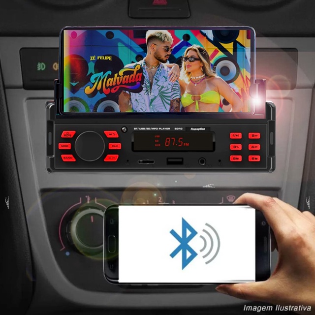 Som Automotivo Rádio Mp3 Porta Celular Bluetooth Usb Sd Aux Suporte Para Smartphone Android Iphone