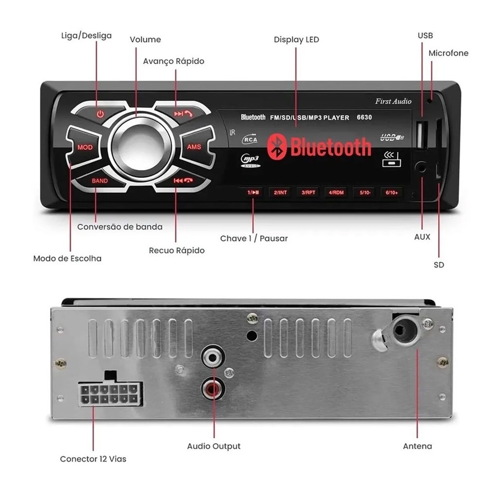 Som Radio Mp3 Automotivo Para Carro Visor Com Led Entrada Usb e Auxiliar Fm Leitor De Cartão SD Lançamento
