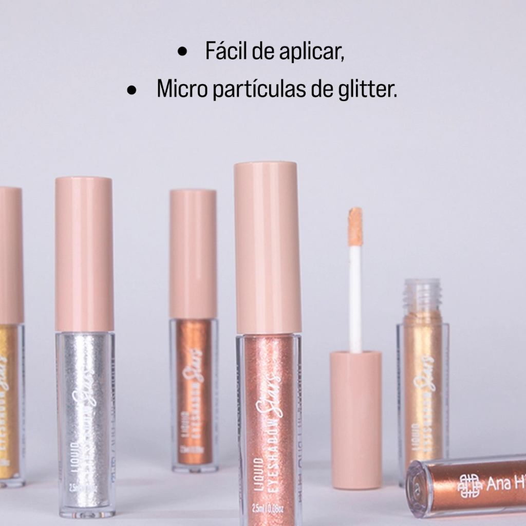 Sinta-se poderosa e confiante com a linha de maquiagens de Ana Hickmann. Produtos para rosto, olhos, boca e acessórios como esponjas, curvex, pincéis profissionais e kits. Produtos de alta performance. Seja a protagonista do seu próprio beauty show! - Sombra líquida cintilante com micro partículas de glitter. - Disponível em 5 cores. Modo de uso: Passe nas pálpebras utilizando o aplicador do produto. Ingredientes: Aqua, Glycerin, Acrylates/Vinyl Isodecanoate Crosspolymer, Aminomethyl Propanol, Polyvinyl Alcohol, Phenoxyethanol, Caprylyl Glycol. May Contain (+/-): Mica (CI 77019), Iron Oxide Red(CI 77491), Calcium Aluminum Borosilicate, Titanium Dioxide(CI 77891), Tin Oxide (CI 77861), Synthetic Fluorphlogopite, Silver (CI 77820). * Produto Vegano *