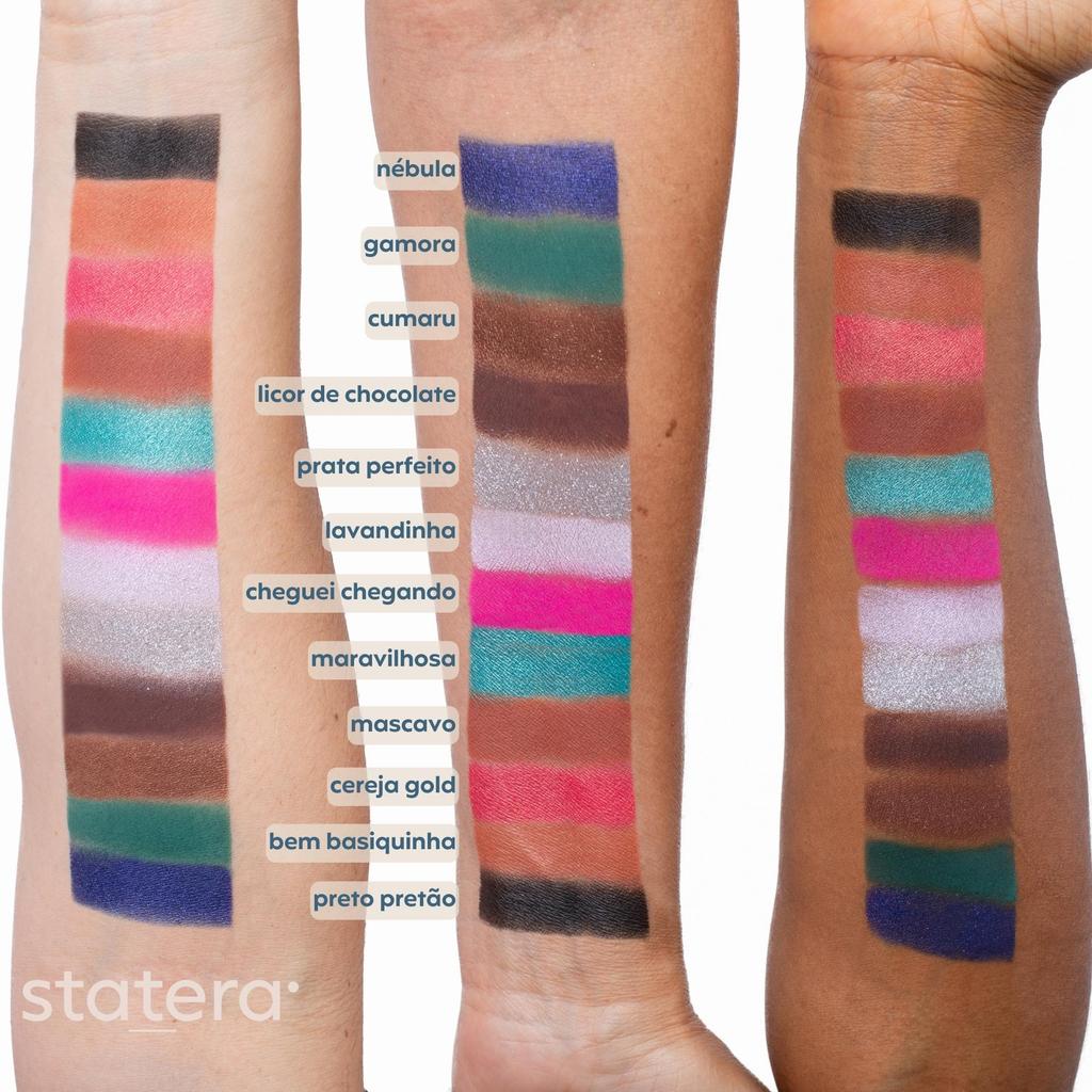 A Statera nasceu para unir a sabedoria da natureza à precisão da ciência, trazendo o equilíbrio perfeito para descomplicar seu autocuidado. Nosso diferencial é combinar jovialidade e criatividade com total honestidade e rigor técnico, entregando fórmulas que harmonizam eficácia e bem-estar. Foi pensando nisso que desenvolvemos nossas sombras compactas. Desperte sua criatividade com nossas sombras! Apresentamos nossa exclusiva coleção de sombras em refil, a ferramenta perfeita para você personalizar a sua paleta de maquiagem e expandir sua coleção pessoal. Com uma variedade de 15 cores deslumbrantes, nossas sombras abrangem texturas matte, metálicas e cintilantes. A nossa mini magnet comporta 6 sombras ou 3 sombras e um produto com bandeja retangular (iluminador, blushes e pós translúcidos). Personalização sem limites: As sombras em refil permitem que você escolha as cores que realmente combinam com você. Crie uma paleta única para atender ao seu estilo, desde visuais diurnos sutis até looks noturnos cheios de glamour. Cores construíveis: Nossas sombras permitem a construção de camadas, para que você crie looks naturais ou intensos com facilidade. Perfeitas em qualquer lugar: Seja na sua penteadeira em casa ou durante suas viagens, a personalização da sua paleta é fácil e conveniente. Cores: Nébula -Azul escuro cintilante inspirado na complexidade da galáxia Gamora - Verde escuro matte aveludado, pensado na força de uma guardiã Cumaru - Marrom quente cintilante com delicadas partículas de brilho douradas Licor de Chocolate - Um marrom neutro intenso em uma textura matte aveludada Prata Perfeito - Metálico prateado com partículas de brilho de diferentes tamanhos, resultando em um efeito molhado e super espelhado Lavandinha - Um suave cintilante lavanda Cheguei Chegando - Rosa vibrante matte aveludado Maravilhosa - Azul turquesa cintilante com diferentes tamanhos de partículas de brilho Mascavo - Marrom quente matte aveludado de tom médio Cereja Gold - Rosa avermelhado com brilhos dourados cintilantes Bem Basiquinha - Um marrom quente de tom claro/médio com textura matte aveludada com brilhos finos dourados Preto Pretão - Um super preto com textura matte aveludadaPeso: 1,5 g