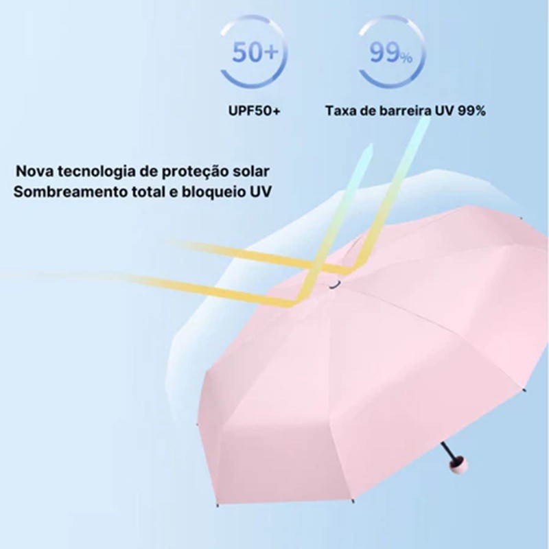 Sombrinha Mimo PQ Lisa Com Estojo com 3 Dobras ea Prova De Uv e Ultra Light