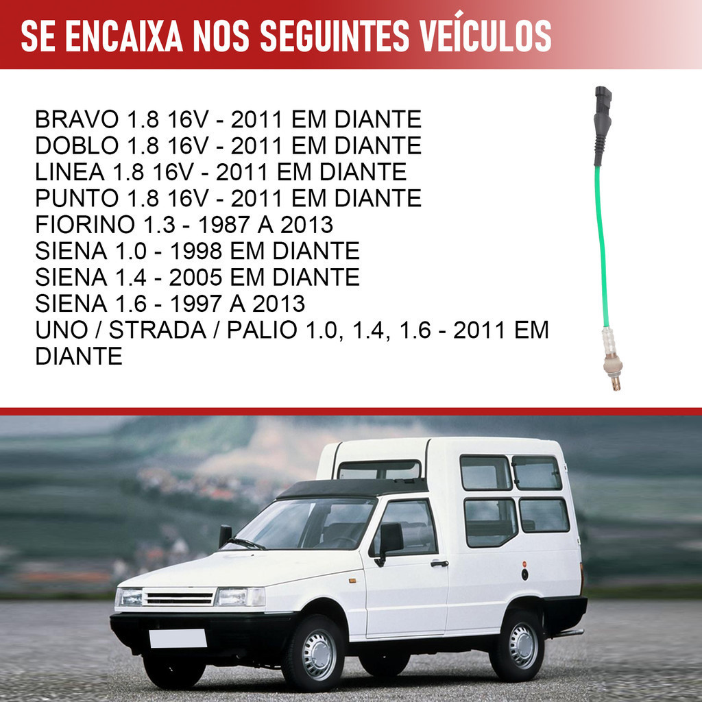 VERIFIQUE O CÓDIGO DA PEÇA INSTALADA NO SEU CARRO ANTES DE EFETUAR A COMPRA. PRODUTO NOVO, EXCELENTE QUALIDADE. TEMOS A PRONTA ENTREGA, ENVIO IMEDIATO. COMPATÍVEL COM: SONDA LAMBDA / SENSOR DE OXIGÊNIO PRÉ CATALISADOR. 4 PINOS - COMPRIMENTO DO CABO: 24 cm. CÓDIGO REFERÊNCIA: OZA641-A2 / OZA641-A5 / OZA641A2 / OZA641A5 / 55236778. APLICAÇÃO: BRAVO 1.8 16V - 2011 EM DIANTE DOBLO 1.8 16V - 2011 EM DIANTE LINEA 1.8 16V - 2011 EM DIANTE PUNTO 1.8 16V - 2011 EM DIANTE FIORINO 1.3 - 1987 A 2013 SIENA 1.0 - 1998 EM DIANTE SIENA 1.4 - 2005 EM DIANTE SIENA 1.6 - 1997 A 2013 UNO / STRADA / PALIO 1.0, 1.4, 1.6 - 2011 EM DIANTE PERGUNTAS FREQUENTES ·Posso retirar a minha compra pessoalmente? Não ·As fotos são reais do produto? Sim. ·O produto é novo? Sim. ·O produto está disponível em estoque? Sim ·Qual o tempo de garantia? 90 dias a partir da data da compra. ·Como sei que o produto é compatível com meu carro? Verifique atentamente os carros listados na aplicação acima, confira a lista de códigos de referência e compare as fotos com o produto que tem em mãos. ·Deve ser instalado por um profissional? Sim, sempre recomendamos que a instalação seja feita por um profissional especializado, não nos responsabilizamos pelo mau uso ou instalação indevida, isso pode causar a perda da garantia. ( Parabéns!!! Você está comprando um produto de qualidade. Agradecemos pela preferência, estamos à disposição. Garantia do vendedor: 3 meses GARANTIA / DEVOLUÇÕES A sua compra está protegida, em caso de problemas faremos o possível para resolver o mais rápido possível, mas NÃO REMOVA O SELO DE GARANTIA. No caso de devolução da compra aceitaremos somente com embalagem original e nota fiscal.