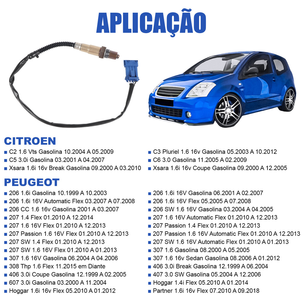 Sonda Lambda Citroen C3 C5 C6 Xsara Peugeot 206 307 406 407 Hoggar Partner Pós 0258006185