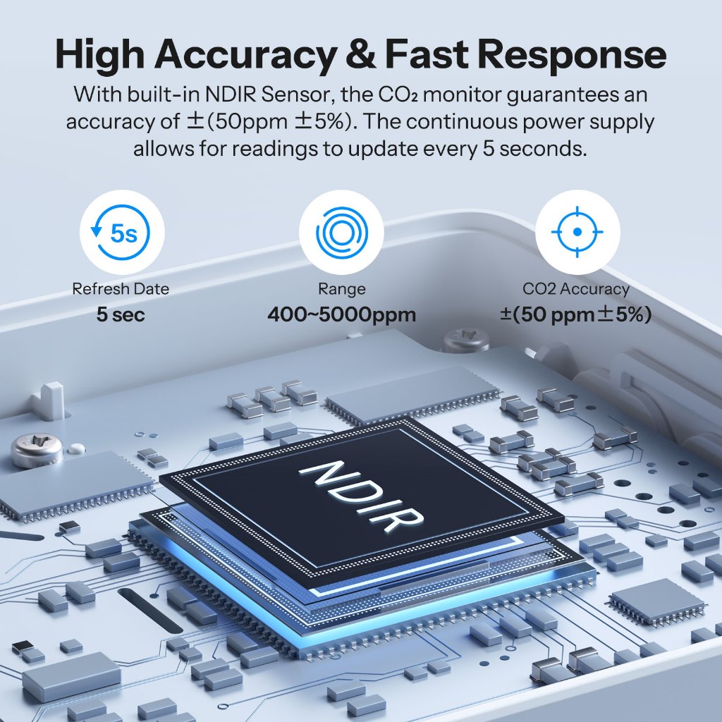 Matéria CO2 sobre Monitor de qualidade do ar Wi-Fi SONOFF AirGuard CO2 | SAWF-08P O AirGuard CO2 é um Matter sobre o monitor de qualidade de ar Wi-Fi CO2 projetado para integrar perfeitamente com Apple Home, Amazon Alexa, Google Home e outras grandes plataformas. Ele oferece precisão de nível profissional com um sensor NDIR refrescante a cada 5 segundos, enquanto suporta alarmes sonoros, alertas de luz indicadoras e avisos de notificação de pressão. Níveis de CO2 simultaneamente com comutação de unidade de temperatura flexível O dispositivo monitora a temperatura, umidade e níveis de CO2 simultaneamente com comutação de unidade de temperatura flexível. Também fornece sugestões de melhoramento de ar combinando as condições externas da sua cidade com dados internos em tempo real. Além disso, armazena um ano inteiro de registros históricos com suporte à exportação, oferecendo insights valiosos para análise de qualidade aérea a longo prazo. Multi-Métrica Monitoramento Ambiental】Simultaneamente rastreia e exibe níveis de temperatura, umidade e CO2, com suporte para unidades de temperatura de comutação para se ajustar às suas preferências. Alta precisão e sensor rápido】Engenhado com precisão de nível profissional usando uma precisão de sensor NDIR ±(50 ppm + 5%) de precisão. Refresca a cada 5 segundos para garantir atualizações oportunas sobre as condições do ar em mudança. Conselhamento de Melhoria da Qualidade do Ar】Offers aconselhamento de melhoria combinando leituras internas em tempo real com condições de ar ao ar livre em sua cidade, ajudando você a tomar as ações certas para manter um ambiente mais saudável. Armazenamento de dados histórico de um ano】 Armazena com certeza até um ano de dados de qualidade aérea passados e suporta a exportação, fornecendo uma base confiável para analisar padrões de ar em casa de longo prazo. Apoiar o Protocolo de Matéria】Conteúdo de Mata】Configuração perfeita da Apple Home, Amazon Alexa, Google Home e muito mais. Facilmente construir cenas inteligentes com dispositivos de terceiros para controle automatizado de qualidade do ar. Modelo modelo SAWF-08P MCU ESP32-D0WDR2-V3 Tipo de Interface de Interface Tipo-C Wi-Fi Wi-Fi GHz Peso líquido líquido 101g Dimensão do Produto 70x103X26mm Material da caixa PC + ABS Temperatura de trabalho -10℃~50℃ Umidade de trabalho 5-95%RH, não condensação CERTIFICAÇÃO DO CERTIFICAÇÃO CE/FCC/RoHS ID FCC 2APN5-SAWF08P
