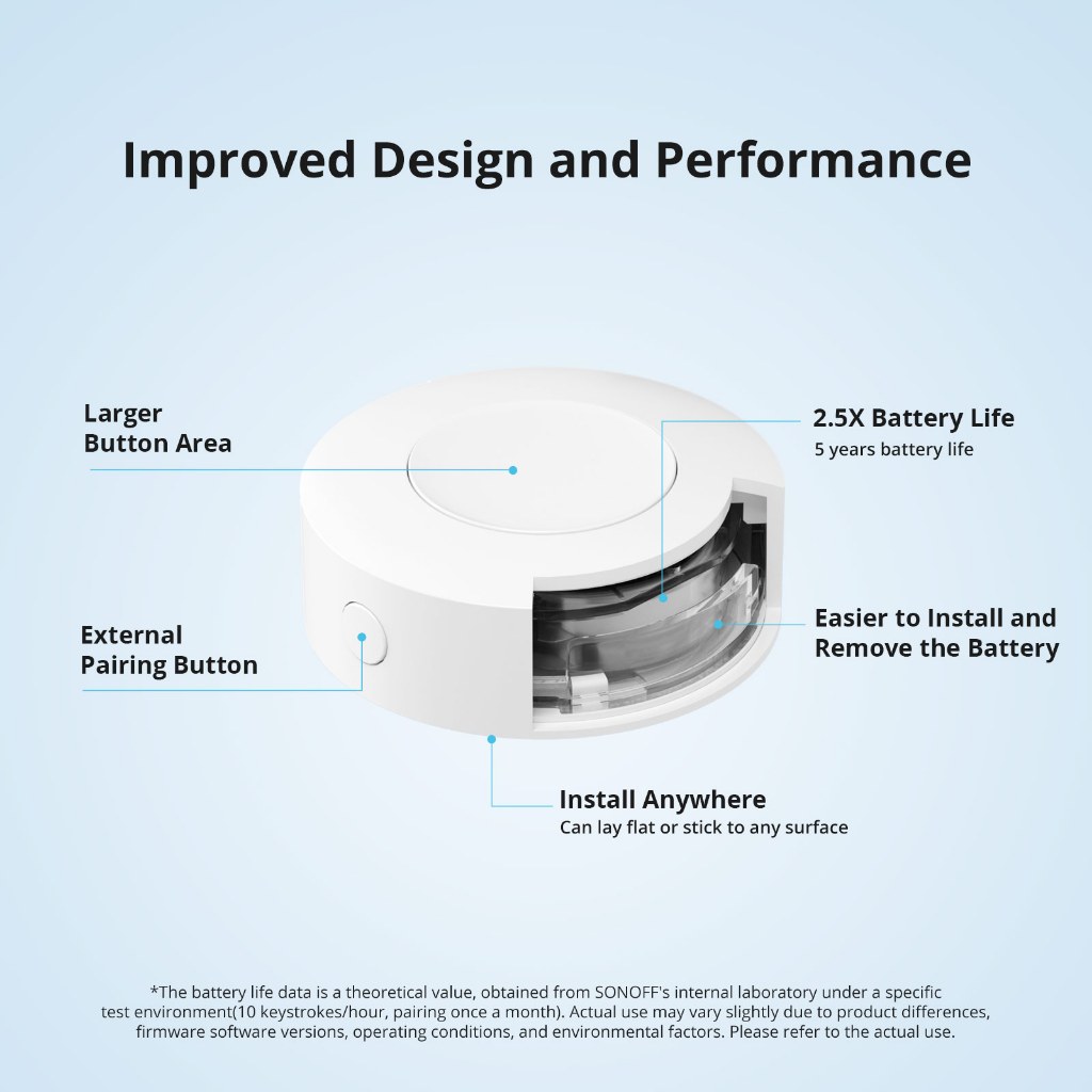 Obs: Este SNZB-01P requer trabalhar com o gateway Zigbee como ZBBridge-P, por favor, confirme antes da compra. Descrição do produto Item de relatório de relatório de responsabilidade/atividade suspeita Interruptor inteligente de interruptor sem fio inteligente SONOFF SNZB-01P Zigbee via controle inteligente eWeLink de duas vias com interruptor de parede final TX NSPanel Pro O SONOFF SNZB-01P é um pequeno interruptor inteligente sem fio Zigbee que pode até caber no bolso, com ações predefinidas para prensa única, prensa dupla e pressione longamente para controlar vários dispositivos. O SNZB-01, o SNZB-01P melhorou o design e o desempenho. Com uma área de botão maior, 5 anos de duração da bateria, botão de emparelhamento externo, a bateria é mais fácil de instalar e substituir. Snzb-01p pode ser colocado onde sua necessidade, ou colar com Adesivo 3M e uma placa de metal em uma superfície plana em qualquer lugar, depois criar uma cena inteligente, como desligar todos os dispositivos com um lamber. O controle de duas vias está disponível para você ligar/desligar a luz de dois locais. Além disso, o SNZB-01P também pode ser usado como campainha quando conectado ao NSPanel Pro, você será notificado quando os visitantes pressionarem o interruptor sem fio. O SNZB-01P é operado por bateria, seu celular receberá uma notificação de baixa bateria quando o nível restante da bateria é operado, seu celular receberá uma notificação de baixa bateria quando o nível restante da bateria é baixo. O suporte SNZB-01P verificando a história de 3 meses. O SNZB-01P pode ser colocado onde precisar, ou preso com adesivo 3M e uma placa de metal em uma superfície plana em qualquer lugar. Obs: Este SNZB-01P requer trabalhar com o gateway Zigbee como ZBBridge-P, por favor, confirme antes da compra. Compatível com Zigbee padrão O Zigbee 3.0 suporta cubos de Zigbee usando o protocolo Zigbee 3.0, e teoricamente suporta adicionar a qualquer cubo de Zigbee desenvolvido de acordo com protocolos Zigbee 3.0. Design e desempenho aprimorados *Os Dados de vida útil da bateria são um valor teórico, obtidos do laboratório interno da SONOFF sob um ambiente de teste específico (a condição principal é 10 teclas/hora e emparelhamento uma vez por mês). O uso real pode variar ligeiramente devido a diferenças de produtos, versões de software de firmware, condições de operação e fatores ambientais. Por favor, consulte o uso real. Interruptor One, três ações Personalize a operação correspondente a uma única prensa, prensa dupla e pressione longamente um interruptor sem fio. Desligue todos os dispositivos com um clique Desligue todas as luzes, plugues, cortinas, e mais com um clique ao sair de casa. Atuar como campainha A tempo você será notificado quando os visitantes pressionarem o interruptor sem fio. Interruptor sem fio para suas rotinas Alexa Rotinas Alexa Gatilho Alexa com a prensa do interruptor sem fio. Adesivos para sua escolha Use adesivos de ícone para esclarecer o que cada botão faz. Vários Métodos de Instalação Especificações Método de comunicação Bluetooth-compatível com Zigbee Número do modelo modelo SNZB-01P Nome da marca SONOFF Origem do continente China Certificação CE de certificação CE, FCC,RoHS Conexão sem fio Zigbee (IEE 802.15.4) Bateria modelo CR2477 Temperatura de trabalho -10°C-60°C Material da caixa PC Dimensão do produto 45x45x17,7mm