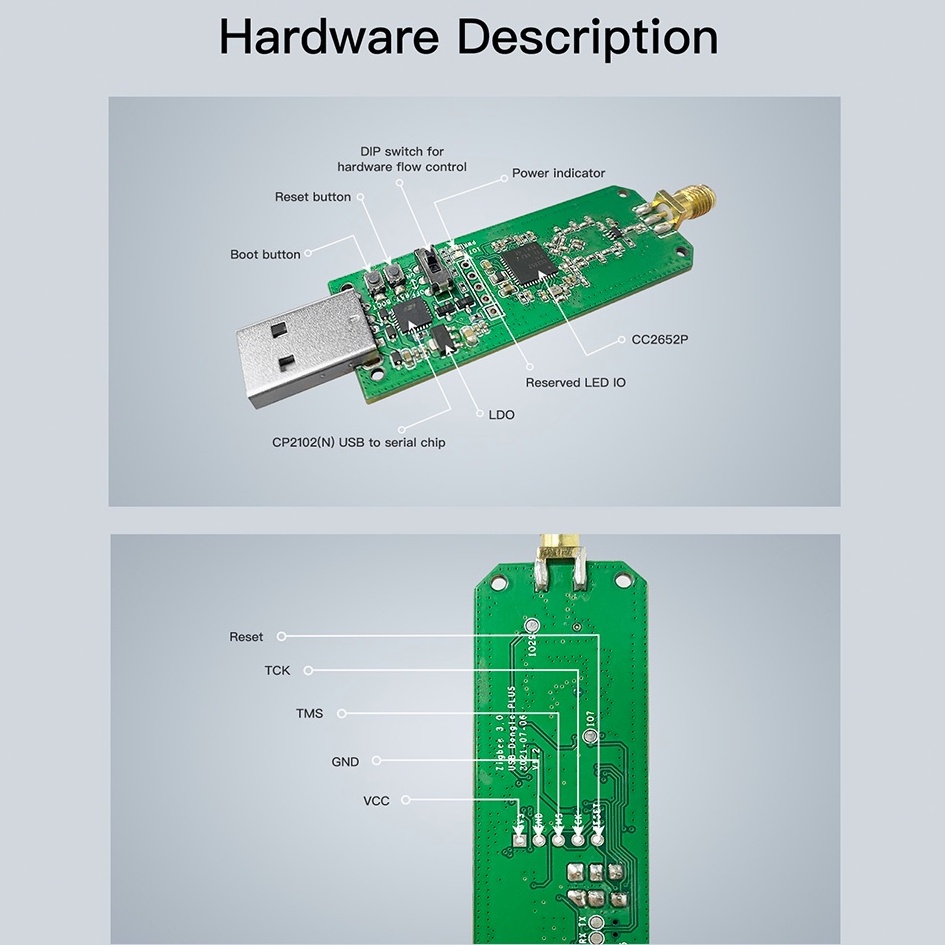 Descrição do produto em inglês após português Sonoff Zigbee 3.0 USB Dongle Plus é um bastão USB Zigbee universal. Pode ser usado como um gateway Zigbee universal em Home Assistant ou outras plataformas de fonte aberta via ZHA ou Zigbee2MQTT para controlar localmente todos os seus sub-aparelhos Zigbee, para que não precise investir nos cubos Zigbee para Marcas diferentes, tudo o que você precisa é um gateway universal - Dongle Plus! O dongle plus possui uma ampla gama de dispositivos suportados, como BASICZBR3, S31 Lite zb, SNZB01, SNZB02, SNZB03, SNZB04, ZBMINI, S26R2ZB, e vários sub-aparelhos de várias marcas ou firmware de roteador flash para estender A faixa de rede. Ampla gama de dispositivos suportados O Dongle pode ser usado como um gateway Zigbee 3.0 em plataformas de automação de fonte aberta para gerenciar vários subdispositivos de várias marcas ou firmware de roteador flash para estender a faixa de rede. • Nome da marca: SONOFF • Certificação: Nenhuma • Origem: CN (Origem) • Estado de montagem: Pronto para uso • Número do modelo: SONOFF Zigbee 3.0 USB Dongle Plus • Compatibilidade: Todos Compatíveis • Modelo: SONOFF ZBDongle-P • Temperatura de Trabalho: -10℃~40℃ • Material do escudo: liga de alumínio • Entrada: DC 5V (100mA Max) • Sem fio: Zigbee 3.0 • Dimensão: 87*25,5*13,5mm Observe: ZB Dongle-P não inclui cabo de extensão USB-1.5M, que pode ser comprado separadamente se necessário. ************************************************** SONOFF Zigbee 3.0 USB Dongle Plus is a universal Zigbee USB stick. It can be used as a universal Zigbee gateway in Home Assistant or other open-source platforms via ZHA or Zigbee2MQTT to locally control all your Zigbee sub-devices, so you don't need to invest in the Zigbee hubs for different brands, all you need is a universal gateway - Dongle Plus! The dongle plus has a wide range of supported devices, such as BASICZBR3, S31 Lite zb, SNZB01, SNZB02, SNZB03, SNZB04, ZBMINI, S26R2ZB , and various sub-devices from various brands or flash router firmware to extend the network range. Wide Range of Supported Devices Dongle can be used as a Zigbee 3.0 gateway in open-source automation platforms to manage various sub-devices from various brands or flash router firmware to extend the network range. • Brand Name: SONOFF • Certification: None • Origin: CN(Origin) • State of Assembly: Ready-to-Go • Model Number: SONOFF Zigbee 3.0 USB Dongle Plus • Compatibility: All Compatible • Model: SONOFF ZBDongle-P • Working Temperature: -10℃~40℃ • Shell Material: Aluminum alloy • Input: DC 5V (100mA Max) • Wireless: Zigbee 3.0 • Dimension: 87*25.5*13.5mm Please note: ZB Dongle-P does not include USB Extension Cable-1.5M, which can be purchased separately if necessary.