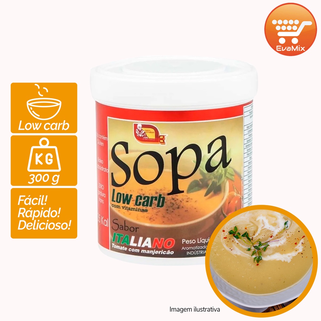 | Sopa Low Carb Com Vitaminas 300g Sabor Italiano este produto | R$ 35,70 | 15% | 4.9/5 | — |