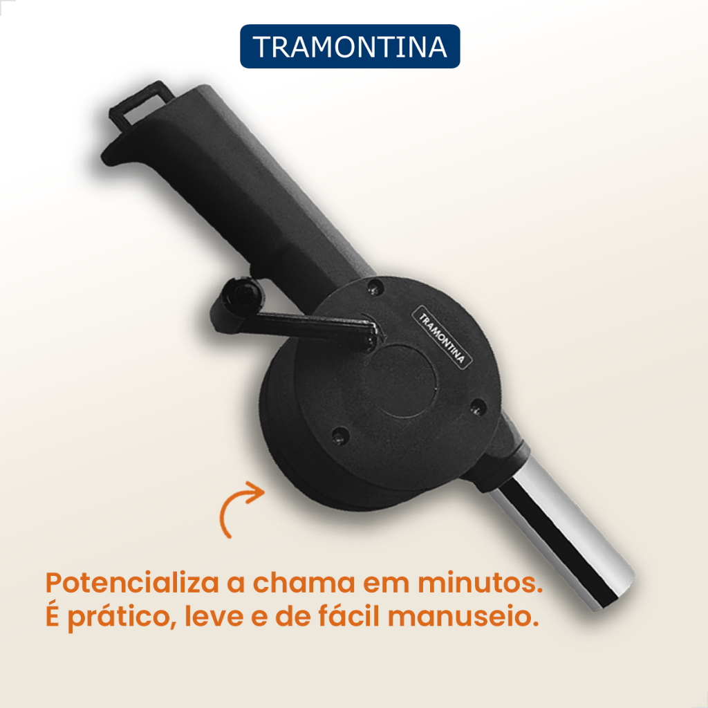 Nada de passar sufoco na hora de fazer aquele churrasco perfeito. Com o Soprador Manual para Carvão Tramontina em Polipropileno e Aço Inox, você garante o acendimento do carvão com facilidade, pois ele possibilita o aumento da quantidade de oxigênio, que potencializa a chama e permite que o fogo atinja o ponto ideal para o preparo do churrasco. 26479101 Principais Características: - Estrutura Durável: Produzido em polipropileno com cabo ergonômico, garantindo conforto e facilidade no manuseio. - Tubo de Aço Inox: O tubo direcionador de ar é feito de aço inox, proporcionando maior resistência ao calor. - Potencializa a Chama: Aumenta rapidamente a quantidade de oxigênio no fogo, permitindo que a chama atinja o ponto ideal em minutos. - Praticidade e Leveza: É leve, prático e de fácil manuseio, tornando o processo de acendimento do carvão simples e eficiente. - Independência de Energia: Dispensa o uso de bateria e energia elétrica, facilitando sua vida e tornando-o ideal para qualquer lugar. Garantia 90 Dias. Modo de Uso: - Preparação: Encaixe a manivela no soprador. - Acendimento: Coloque fogo no carvão e direcione a extremidade do tubo do soprador Tramontina para a base da chama. - Operação: Gire a manivela para aumentar a quantidade de oxigênio e potencializar a chama. - Segurança: Mantenha o soprador a uma distância mínima de 30 cm do fogo para garantir sua segurança. Com o Soprador Manual para Carvão Tramontina, acender o carvão para seu churrasco nunca foi tão fácil e eficiente. Aproveite a praticidade e a qualidade desse utensílio e torne seus momentos de churrasco ainda mais agradáveis!