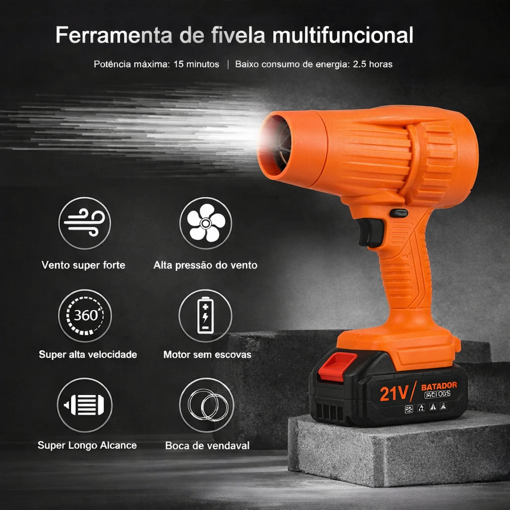 Soprador de Ar Turbo Portátil 21V 1 Bateria bivolt | 1050W, 50000RPM | Remove Folhas e Pó