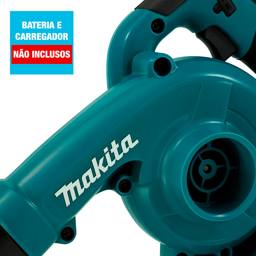 Soprador de Folhas a Bateria 18v (no inclusa) Makita DUB186Z Ol, seja bem-vindo loja virtual da Cicampo Mquinas e Ferramentas, o seu shopping das ferramentas! O soprador perfeito para a limpeza e varrio de folhas e detritos em diversos tipos de ambientes, tanto abertos quanto fechados. Com baixo nvel de rudo, ideal para uso em locais prximos a escritrios, escolas e residncias, sem causar incmodos. Seu projeto inovador proporciona maior volume de ar, graas ao aumento do dimetro de sada do tubo para 4", garantindo uma limpeza mais eficiente. A aderncia suave no punho oferece mais conforto durante o uso, mesmo em tarefas prolongadas. Principais vantagens -Compacto e leve para operao com uma s mo. -Velocidade mxima de 68 ms para uma limpeza rpida e eficiente. -Zero emisses e baixa necessidade de manuteno. Especificaes Tcnicas Motor: 18V Volume de ar: 0 3,2 mmin Velocidade do ar: 68 ms Fora de sopro: 0 2,5 N Rotao: 0 18.000 rpm Nvel de presso sonora: 82,5 dB(A) Nvel de potncia sonora: 92,4 dB(A) Peso: 1,1 kg (sem bateria e tubo de jardinagem) 2,1 kg (com bateria 18V 6,0Ah BL1860B e tubo de jardinagem) Itens Inclusos Manual de instrues Tubo de jardinagem (cdigo 191G09-6) Observao: No acompanha bateria e carregador. Prazo de Garantia 12 meses conforme especificaes do fabricante Imagens meramente ilustrativas Todas as informaes divulgadas so de responsabilidade do fabricantefornecedor Os preos anunciados neste site podem sofrer alteraes sem avisos prvios