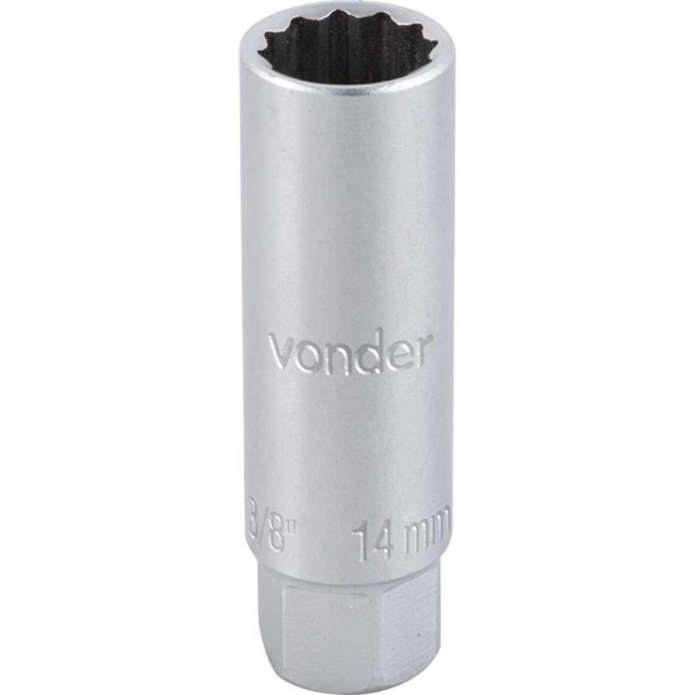 Código do Fornecedor: 3059014034 Marca: Vonder Conteúdo da embalagem: 1 Soquete para vela. Destaques e diferenciais: Possui acabamento cromado e proteção interna de borracha para segurar a vela de ignição. Aplicações e dicas de uso: Indicado para remoção de velas de veículos leves e médios. Garantia legal: 3 meses Qualificação Técnica Medida do encaixe (pol): 3/8" Medida: 14 mm Comprimento total: 63 mm Medida do sextavado externo: 16 mm Material : Aço cromo vanádio Acabamento: Cromado Massa aproximada (peso) (kg): 0,56 kg