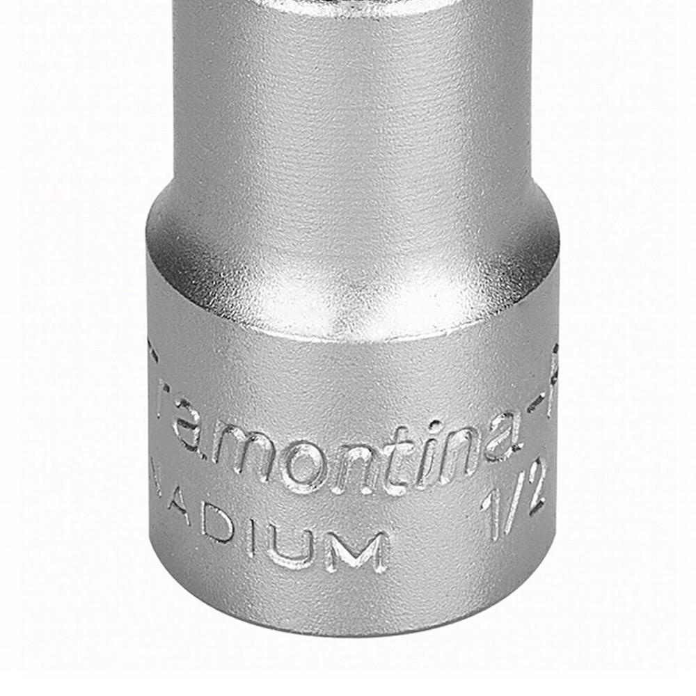 Os soquetes da Tramontina PRO são produzidos com sistema Hyper Drive que melhora o acoplamento do produto ao parafuso ou porca, reduzindo as tensões geradas no aperto e prolongando a sua vida útil. Escolha o tamanho e perfil ideal para a sua necessidade e mãos à obra. Um grande avanço na produção dos soquetes é a introdução do conceito "Hyper Drive". Este novo perfil melhora o acoplamento do soquete na porca ou parafuso, reduzindo as tensões geradas no aperto, prolongando a vida do soquete e do elemento de fixação.Soquete forjado em aço cromo vanádio e temperado. Acabamento cromado. DIN 3124. Os soquetes são submetidos a testes rigorosos de torque e de dureza para atender a norma DIN 1711-1.Afrouxar e apertar parafusos e porcas sextavados.As ferramentas são produzidas e testadas conforme normas específicas. Os soquetes da Tramontina PRO são produzidos com sistema Hyper Drive que melhora o acoplamento do produto ao parafuso ou porca, reduzindo as tensões geradas no aperto e prolongando a sua vida útil. Escolha o tamanho e perfil ideal para a sua necessidade e mãos à obra.