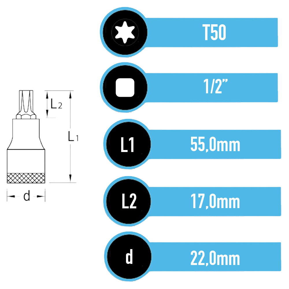 Soquete Torx Macho Encaixe 12" T50 Gedore Red R62452110