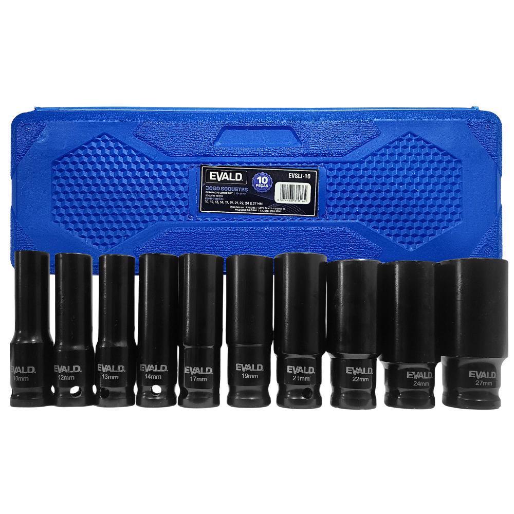 Soquetes Impacto Longo 1/2 POL 10 a 27 MM Kit 10 Peças EVALD