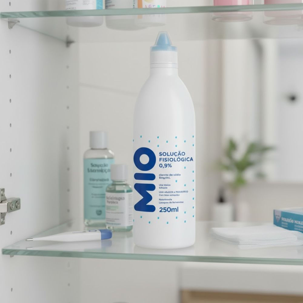 Soro Fisiológico 0,9% Mió 250ml O cloreto de sódio 0,9%, mais conhecido como soro fisiológico, é uma solução salina esterilizada utilizada para limpeza da pele, dos olhos e nariz, queimaduras ou ferid