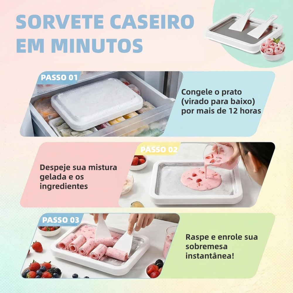 Sorveteria Infantil com Chapa Instantânea – Brinquedo de Fazer Sorvete de Rolo | Máquina de Sorvete na Chapa
