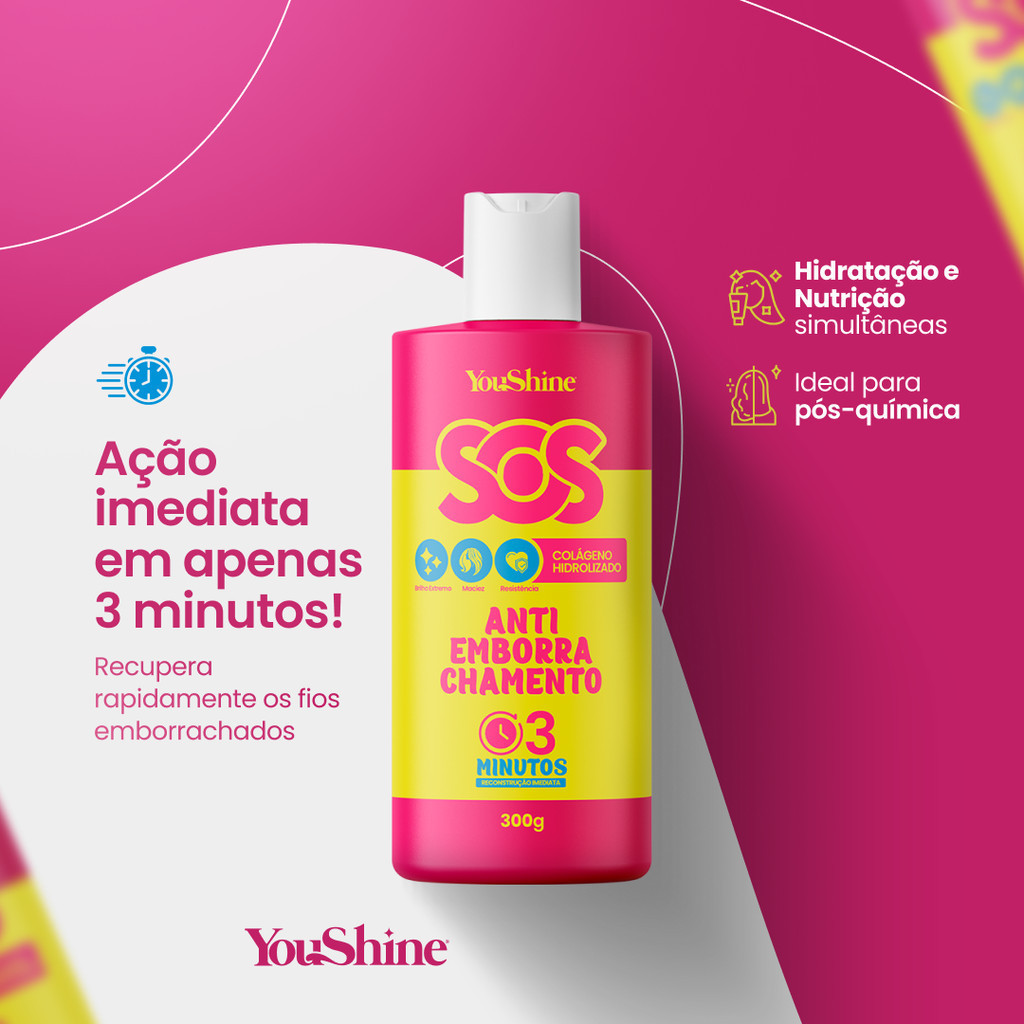 SOS Antiemborrachamento Reconstrução Capilar YouShine 300g Colágeno Hidrolizado Cabelos Danificados