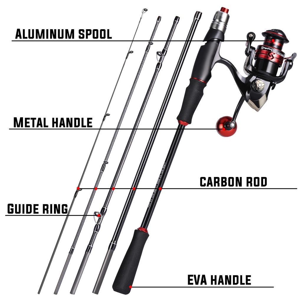 Sougayilang Conjunto De Cana De Pesca E Molinete 1.8m/2.1m Portátil 5 Seções 6 Com EVA/Metal Alça Max Arraste 10kg