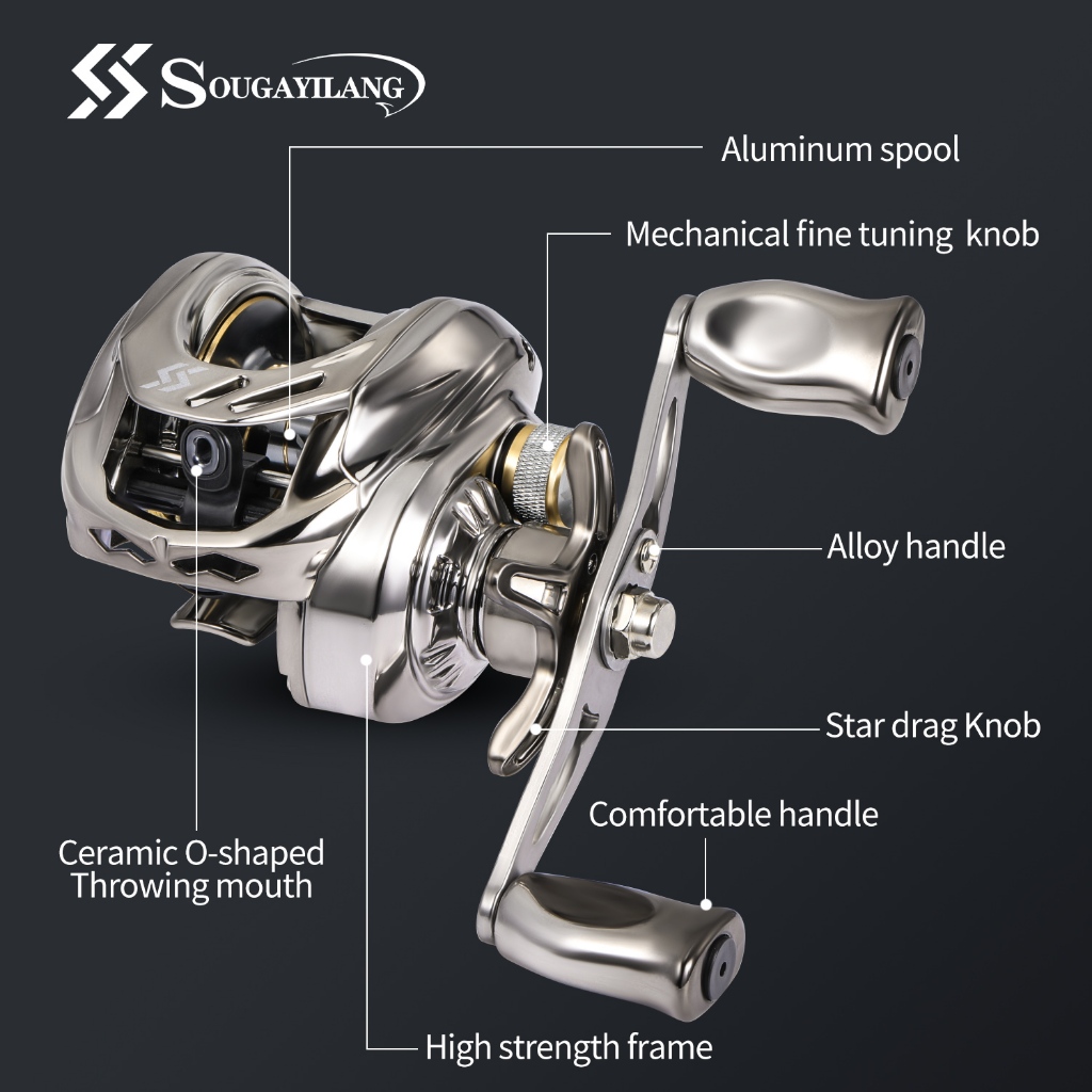 Sougayilang Max Drag 15Kg Carretel de fundição de isca Esquerda/Carretel de pesca com alça direita 7.2:1 Carretel de pesca com relação de engrenagem 18+1 Rolamentos de esferas carretel de pesca para água doce/água do mar Lista de Pacotes Carretel de Pesca 1pc*Carretel de Pesca Linha de pesca 1pc* Informações do produto 1.Marca:Sougayilang 2.Rolamento de bola de rolamento: 18+ 1 3.Relação de Engrenagem de Engrenagem:7,2;1 4.ARRASTO Max: 8KG 5.Capacidade da linha de linha: 0,23 mm-180 m 0,28mm-150m 0,30 mm-110 m 6.Peso: 217g/7,6oz 7.Mão esquerda/direita usando:Esquerda/direita 8.Tipo de carretel de fundição de isca: carretel de fundição de isca 9.Cor: Cinza/Roxo Características do Produto ✅ Rolamentos de esferas de aço inoxidável de alto desempenho 18 + 1BB ✅ Relação de alta velocidade 7.2:1, pode recuperar rapidamente a linha de pesca ✅ Cabo de Metal, sinta-se confortável, puxe forte, forte e fácil de manter ✅ Melhorar a suavidade e experimentar o freio magnético do botão, melhorar a suavidade e experimentar o prazer de enrolar