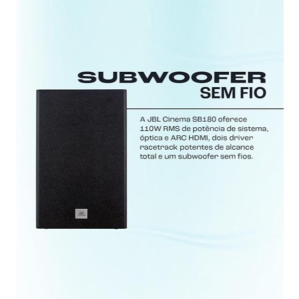 Soundbar JBL Cinema 2.1 Sb180 Com Bluetooth,Sem Fio