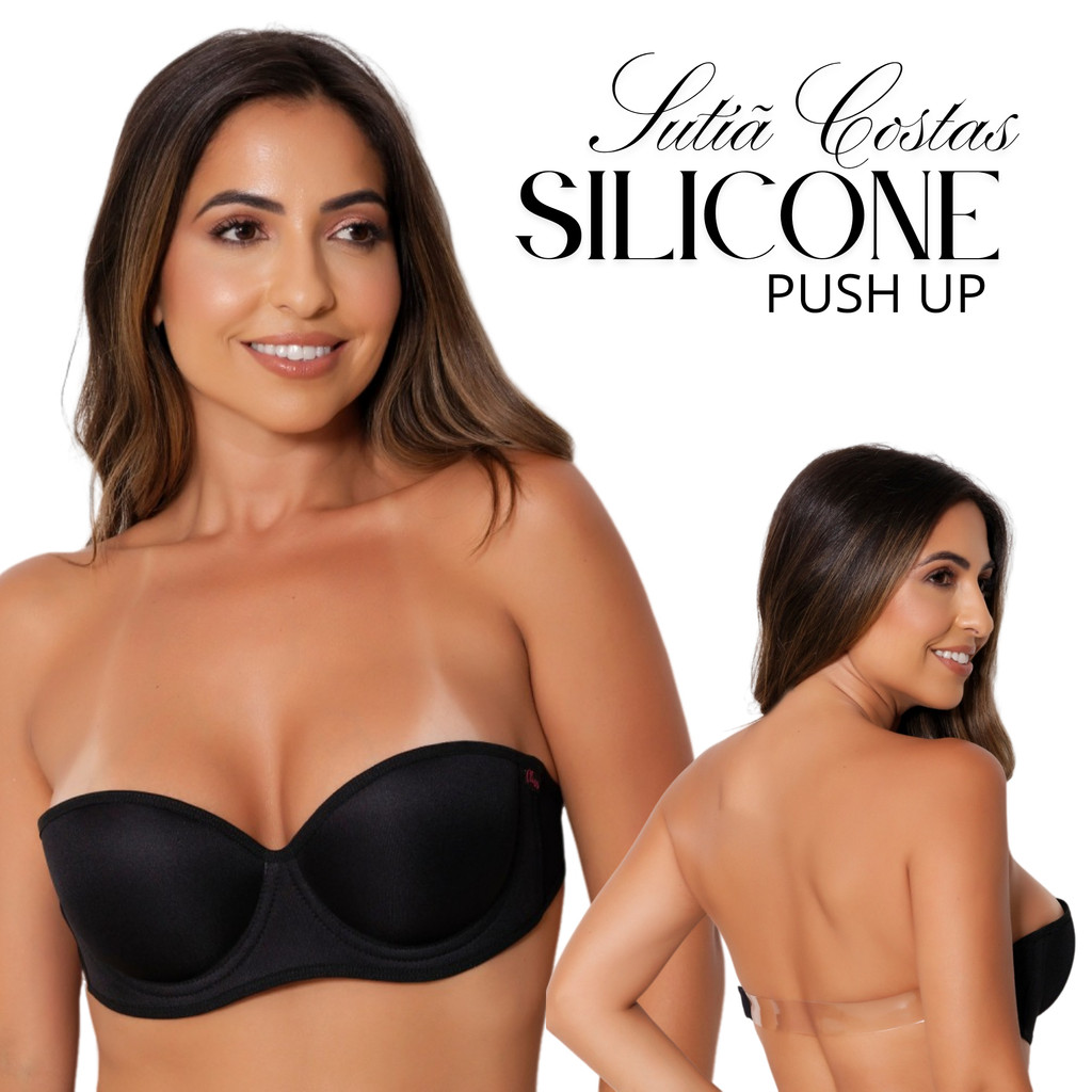 Sutiã tomara que caia com costa de silicone e alça de silicone Esse modelo é ideal para usar com blusas e vestidos com decote abusando da sensualidade, deixando o decote perfeito e bonito. O sutiã tomara que caia, foi feito para aquelas mulheres que querem utilizar um vestido ou alguma blusa sem que apareça as alcinhas dos ombros, mas se quer mais segurança ao utilizá-la, poderá colocar o acessório que vem junto ao produto, uma alcinha transparente de silicone que fica "invisível" e passa despercebido aos olhos nús. tamanhos do silicone das costas P/M/G 27,5 centímetro GG 28,5 centímetro Tabela de Medidas P-40 Busto 80-88 M-42 Busto 88-96 G-44 Busto 96-106 GG-46 Busto 106-110