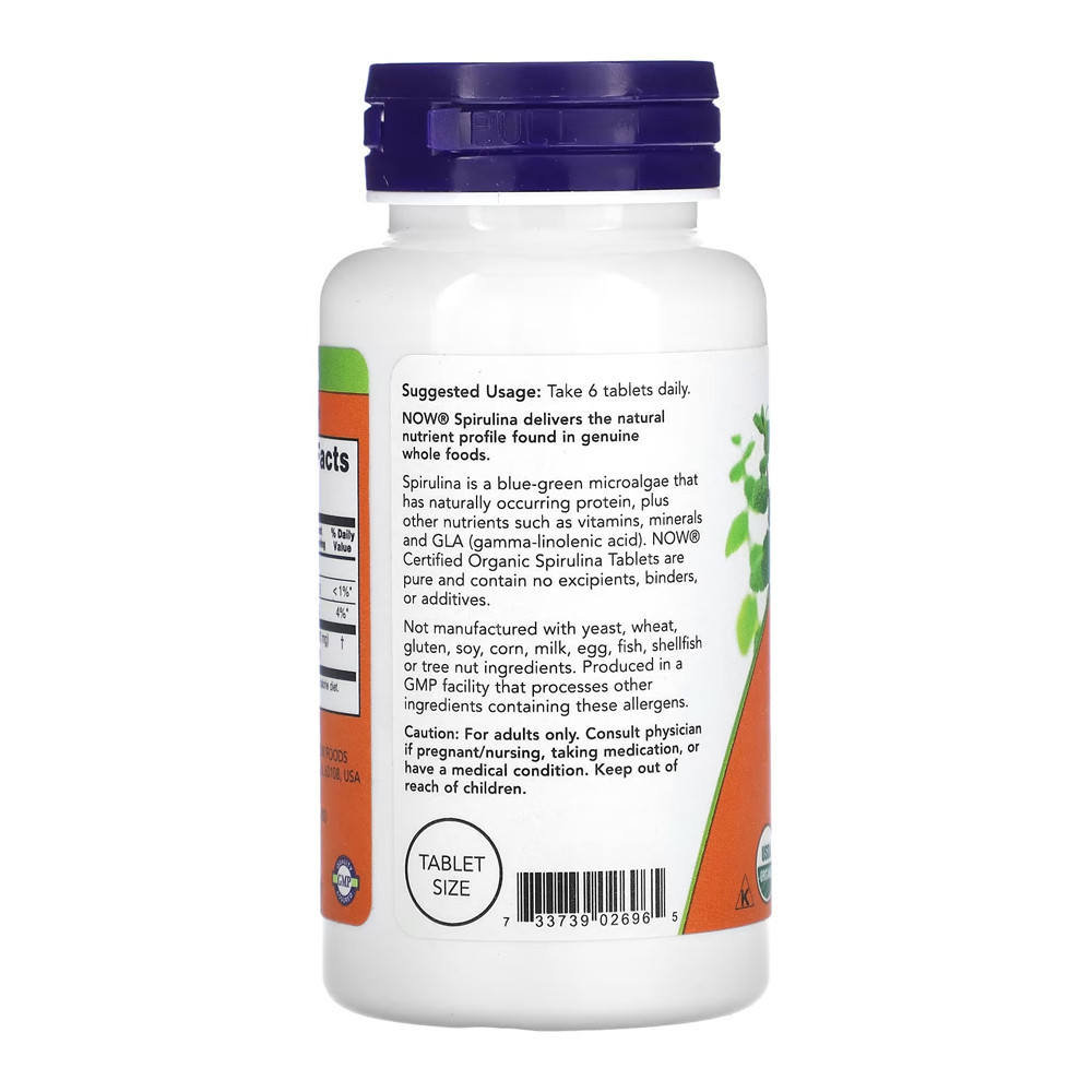 Spirulina Orgânica 500mg Now Foods 100 Tablets