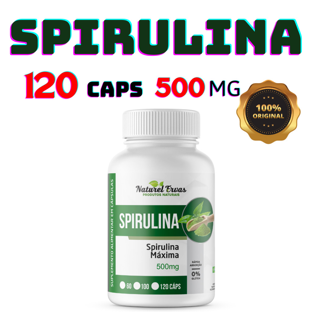| Spirulina Pura 120 cápsulas de 500mg este produto | R$ 22,23 | 7% | 4.9/5 | 12 |