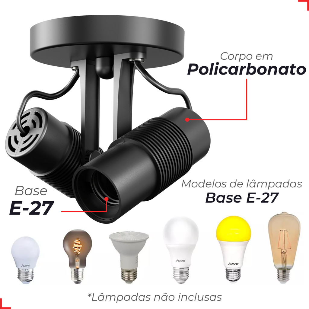 Spot De Sobrepor Basic Para 2 Lâmpadas Preto Base E27 Avant