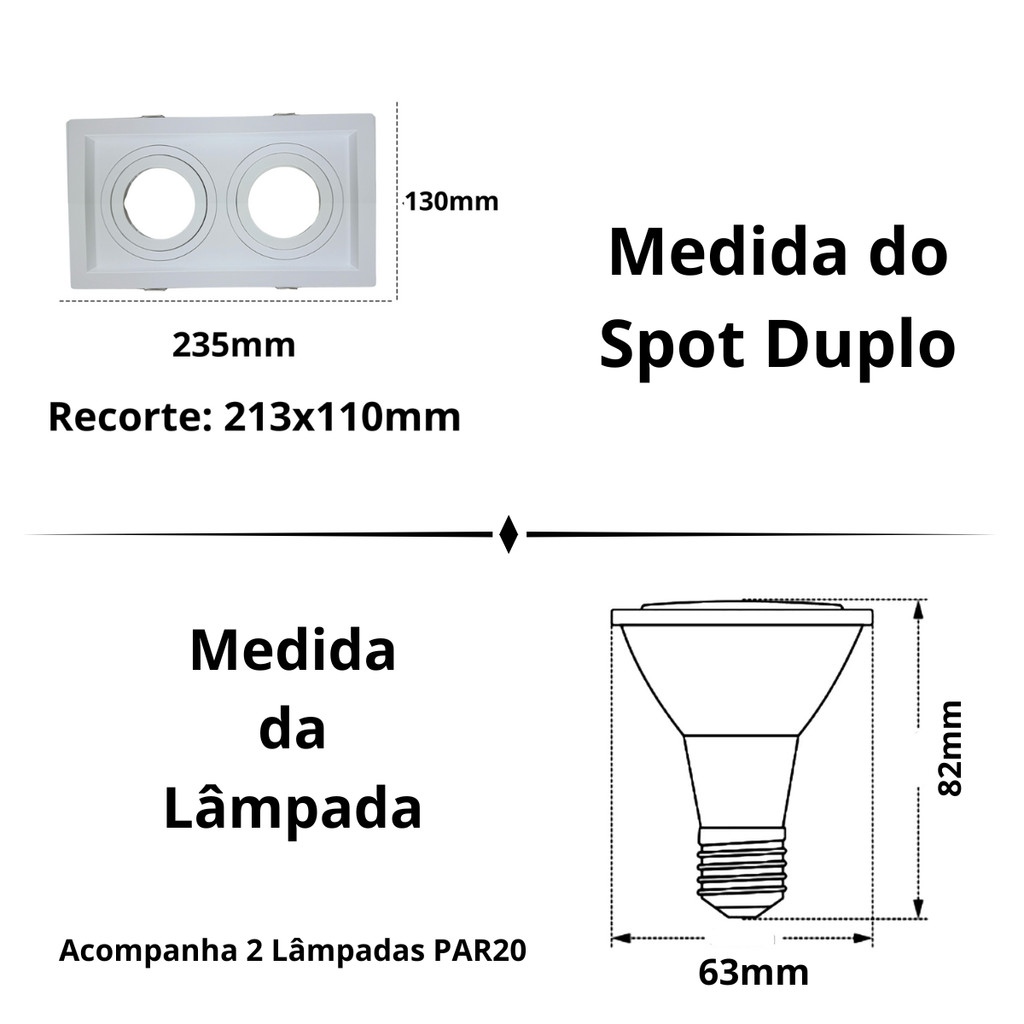 Spot Duplo Recuado Par20 Branco + 2 Lâmpada Led 7W Pix