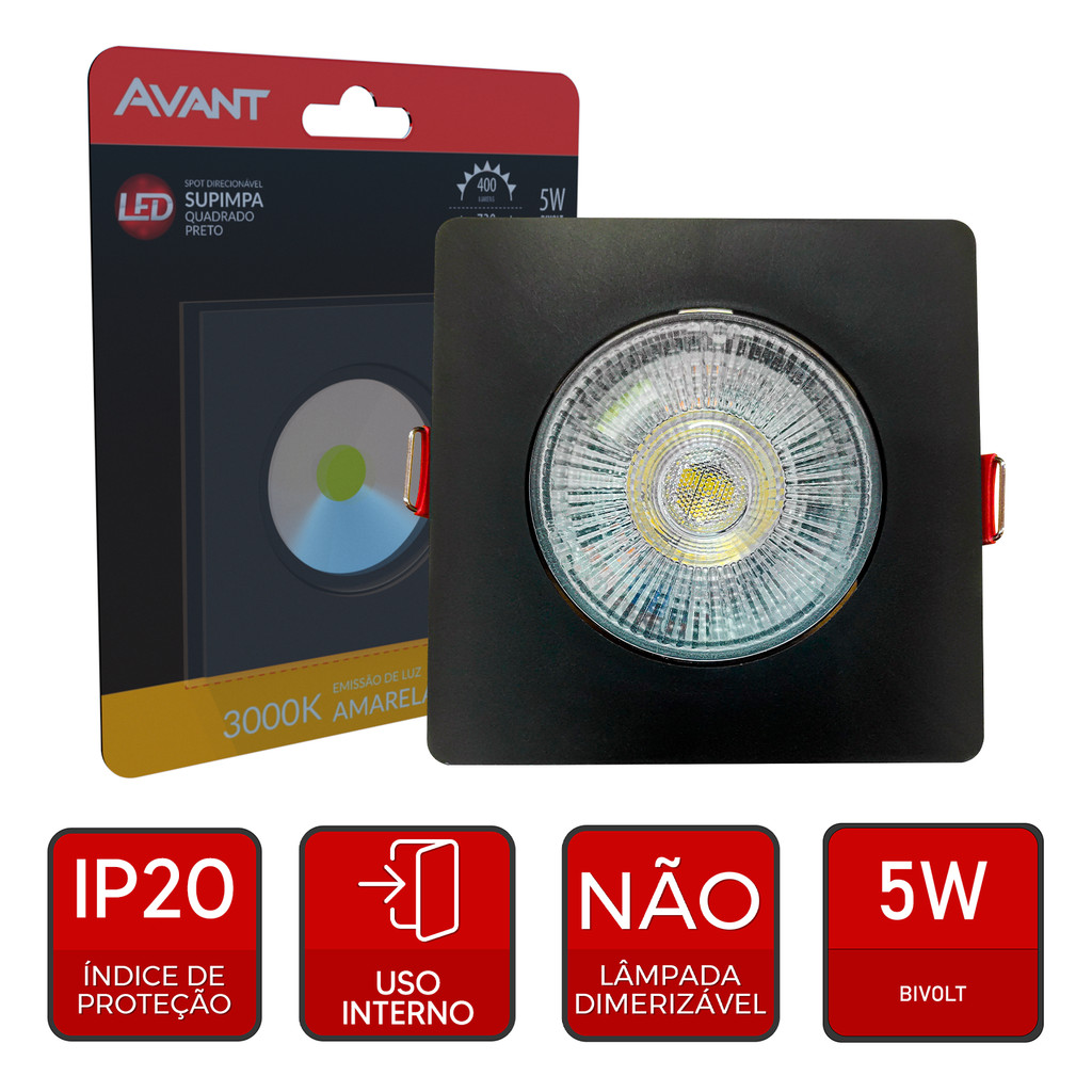 SPOT AUTHENTIC 5W Ilumine seus ambientes com elegância e praticidade! O SPOT AUTHENTIC é a escolha perfeita para destacar objetos e texturas em seus projetos de iluminação, seja em ambientes comerciais ou residenciais. Com design moderno e funcional, este spot oferece a versatilidade que você precisa para criar um ambiente único. PROPRIEDADES: Construção livre de mercúrio. Ajuste manual de direção da luz. Acabamento em policarbonato branco. Baixo consumo de energia. CARACTERÍSTICAS DE FUNCIONAMENTO: Temperatura ambiente: -5°C a 40°C. Tensão de entrada: 100V a 240V. Fator de potência: >0,50. Tipo de Instalação: Embutido. ESPECIFICAÇÕES TÉCNICAS E COMERCIAIS: Código: 865051371 Modelo: LED-SPOT-AUTHENTIC-EMB-QUA-PF-AM3000K-5W-BIVOLT-400 Potência: 5W Fluxo Luminoso: 400 lm Eficiência Luminosa: 80 lm/W Temperatura de Cor: 3000K (Branco Quente) Cor do Produto: Branco Fosco Dimensão A: 90mm Dimensão B: 90mm Dimensão C: 30mm Nicho de Corte: 070mm Garantia Oficial Avant de 12 meses para defeitos de fabricação. Sobre a Avant A Avant é uma marca reconhecida por sua expertise em iluminação LED, oferecendo produtos de alta qualidade e design inovador. Com foco na sustentabilidade e eficiência energética, a Avant se destaca por oferecer soluções luminosas que aliam beleza, funcionalidade e economia.