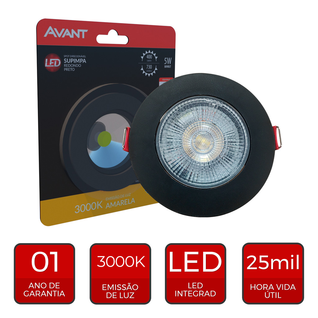 SPOT AUTHENTIC 5W Ilumine seus ambientes com elegância e praticidade! O SPOT AUTHENTIC é a escolha perfeita para destacar objetos e texturas em seus projetos de iluminação, seja em ambientes comerciais ou residenciais. Com design moderno e funcional, este spot oferece a versatilidade que você precisa para criar um ambiente único. PROPRIEDADES: Construção livre de mercúrio. Ajuste manual de direção da luz. Acabamento em policarbonato preto. Baixo consumo de energia. CARACTERÍSTICAS DE FUNCIONAMENTO: Temperatura ambiente: -5°C a 40°C. Tensão de entrada: 100V a 240V. Fator de potência: >0,50. Tipo de Instalação: Embutido. ESPECIFICAÇÕES TÉCNICAS E COMERCIAIS: Código: 865251375 Modelo: LED-SPOT-AUTHENTIC-EMB-RED-PF-AM3000K-5W-BIVOLT-400 Potência: 5W Fluxo Luminoso: 400 lm Eficiência Luminosa: 80 lm/W Temperatura de Cor: 3000K (Branco Quente) Cor do Produto: Preto Fosco Dimensão A: 90mm Dimensão B: 90mm Dimensão C: 30mm Nicho de Corte: 070mm Garantia Oficial Avant de 12 meses para defeitos de fabricação. Sobre a Avant A Avant é uma marca reconhecida por sua expertise em iluminação LED, oferecendo produtos de alta qualidade e design inovador. Com foco na sustentabilidade e eficiência energética, a Avant se destaca por oferecer soluções luminosas que aliam beleza, funcionalidade e economia.