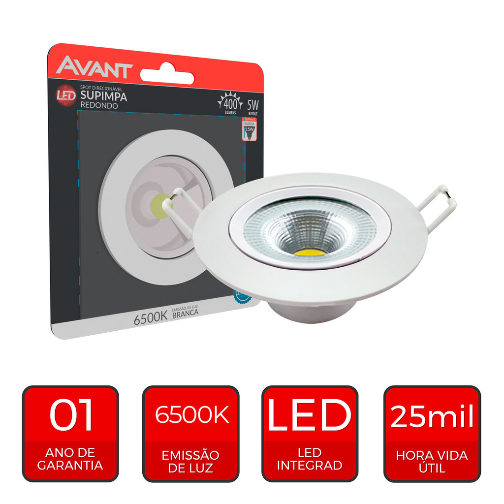 Spot Led Authentic Emb. Redondo 5w 6500k 9cm BF Avant