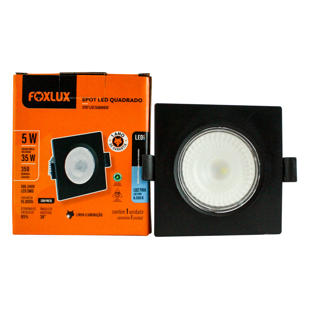 Spot LED Embutir Foxlux 5W 6500K Quadrado Preto Bivolt | iluminação clara, estilo clean