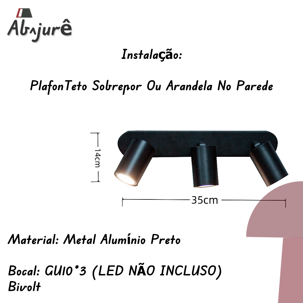 Spot Sobrepor Preto Arandela De Parede Spot Unitário Duplo Triplo Led GU10 Minimalista SLim