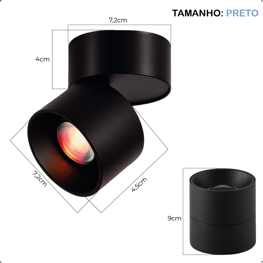 Spot Sobrepor Spot Preto ou Branco Pôr do Sol 10W Luminária de Teto Dobrável Ajustável Bivolt