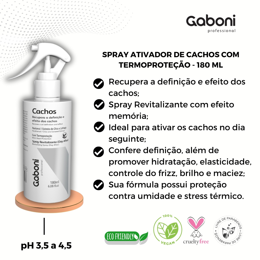 Spray Ativador de Cachos (Day After) com Termoproteção 180ml Gaboni
