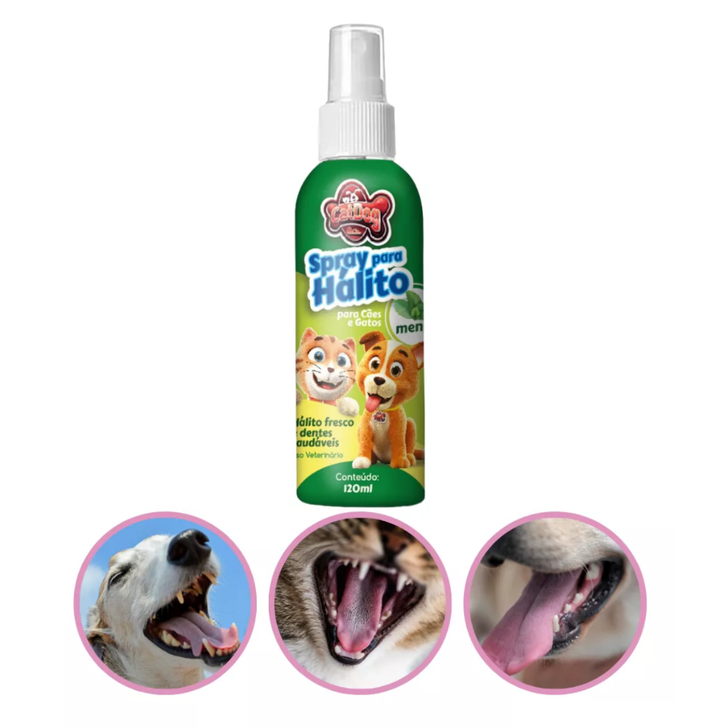 SPRAY BUCAL CATDOG 120 ML HÁLITO FRESTO Seu pet sofre com mau hálito e você não sabe mais o que fazer? O mau cheiro bucal pode ser um problema desagradável, tanto para você quanto para o seu animalzinho, e ainda pode indicar problemas mais sérios, como tártaro. Com o Spray Bucal Contra Mau Hálito da CatDog, você garante um hálito fresco e agradável para o seu pet! Indicado para cães e gatos, ele neutraliza os odores e combate a formação de tártaro, deixando um aroma refrescante de menta, morango ou tutti-frutti. Ainda tem dúvidas? Nosso spray é totalmente seguro e de uso veterinário. Com 100% de satisfação garantida, você pode confiar que seu amigo terá um hálito fresco e saudável, sempre! Conheça os benefícios do Spray Bucal: Deixa o hálito agradável, com aroma refrescante nos sabores Menta, Morango e Tutti-Frutti Neutraliza os odores e cheiro ruim Deixa a boca do seu Cão e Gato com frescor Combate o mau hálito Combate o Tártaro MODO DE USAR Pulverize diretamente na boca do animal durante o dia. Recomendado até 5 aplicações por dia. PRECAUÇÕES Evite contato com os olhos do animal. Manter longe de alimentos e produtos domésticos. Manter em locais secos, fora do alcance de crianças e animais domésticos. Não utilizar em filhotes com menos de 2 meses de vida.