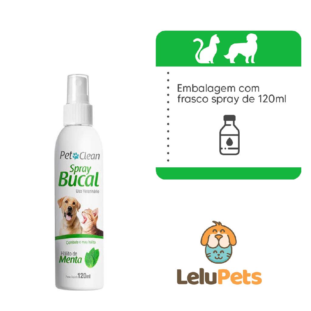 A LeluPets nasceu de uma paixão e dedicação de aproximadamente 20 anos de experiência nessa área tão incrível. Desde o início de nossa história, já são mais de 100 mil clientes atendidos. Estamos aqui determinados em fazer a diferença, democratizando e simplificando o cuidado com o seu pet para oferecer a melhor experiência para você e seu amiguinho. Mantemos nossas orelhas em pé, atentos às novidades do mundo pet para trazê-las até você. Nós somos apaixonados por pets! O seu pet é também da nossa família! Spray Bucal Pet Clean Menta para Cães e Gatos 120 ml O Spray Bucal Pet Clean Menta 120 mL foi desenvolvido para eliminar e prevenir o mau-hálito em Cães e Gatos, Além de deixar um agradável frescor de Menta na boca do animal. - Indicado para cães e gatos; - Proporciona frescor e evita o mau hálito; - Agradável aroma de menta, - Disponível em embalagem de 120 ml.
