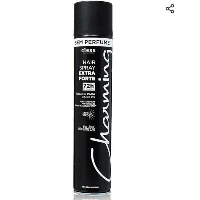 sse é o Hair Spray Extra Forte da Charming SEM PERFUME , um spray fixador para o cabelo sem perfume, ou seja, muito legal para homens que não querem fazer outras fragrâncias competirem com o seu perfume, ou até para os que enjoam fácil de uma fragrância. De fixação extra forte o Charming Spray serve tanto para você modelar quanto para fixar o cabelo, ou seja, ele te ajuda a criar uma boa estrutura para criar diferentes tipos de penteados; também te ajuda a finalizar penteados mais elaborados, como aqueles moicados bem altos; e auxilia no fixar até dos cabelos mais difíceis de disciplinar. O produto não agride ou resseca os fios, mesmo a longo prazo, tanto que ele é bem fácil de retirar, com água ou até com a escovação mesmo. Com ingredientes como silicone o spray cria uma película protetora nos fios, protegendo os fios da umidade, que ocasiona o frizz, e também evita a ação danosa de agentes como a poluição e o vento. De jato seco você não precisa ficar esperando durante um longo tempo até que o produto seque no cabelo por completo e você possa sair de casa. Outra coisa muito bacana no produto também é que ele tem ação prolongada graças a elementos micro encapsulados que vão se liberando com ao longo do dia, mantendo cabelo no lugar.