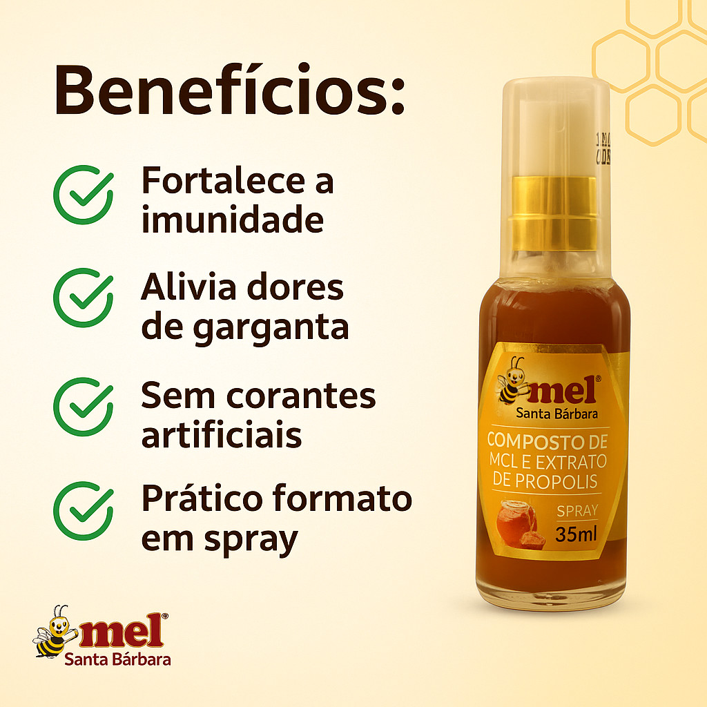 Spray de Mel com Própolis Santa Bárbara 35ml | Alívio Natural para Garganta e Imunidade