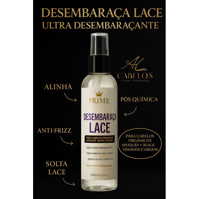 DESCRIÇÃO DO PRODUTO: OBS: É ENVIADO 1 UNIDADE POR PEDIDO. - Revitalizador de Fibras (Hidra Termal) Ultra Desembaraçante Ideal para Cabelos Orgânicos, Apliques, Black, Cachos, Tingidos e Virgens. TOQUE MÁGICO PARA SEU CABELO. Um produto de altíssima qualidade como já mais vista, dar maciez, facilidade a pentear e desembaraçar, brilho natural e restruturação de toda fibra. Um verdadeiro toque de mágica. Descrição do produto: Alisa Lace 200ml DESEMBARAÇA LACE 200 ML foi desenvolvido para todos os tipos de Fibra: Fibra Futura, Orgânica, Fibra Premium, BIO Fibra,black, cachos, Lisos e Também Cabelo Natural tingidos e virgens. É um excelente agente condicionador para os cabelos, melhora a penteabilidade, atua como lubrificante no controle de frizz e proporciona maciez intensa e suavidade. MODO DE USAR: Coloque uma quantidade adequada do produto na palma da mão e aplique sobre os cabelos úmidos massageando mecha a mecha ou penteando os cabelos. Pode ser aplicado antes do secador ou prancha. Sem enxágue. PRECAUÇÕES: Manter fora do alcance das crianças, em caso de irritação suspenda o uso do produto, evite contato com os olhos, em caso de sensibilidade suspenda o uso. Uso externo. Benefícios: - Umidifica; - Movimento; - Modela; - Trata; - Hidrata; - Amacia.