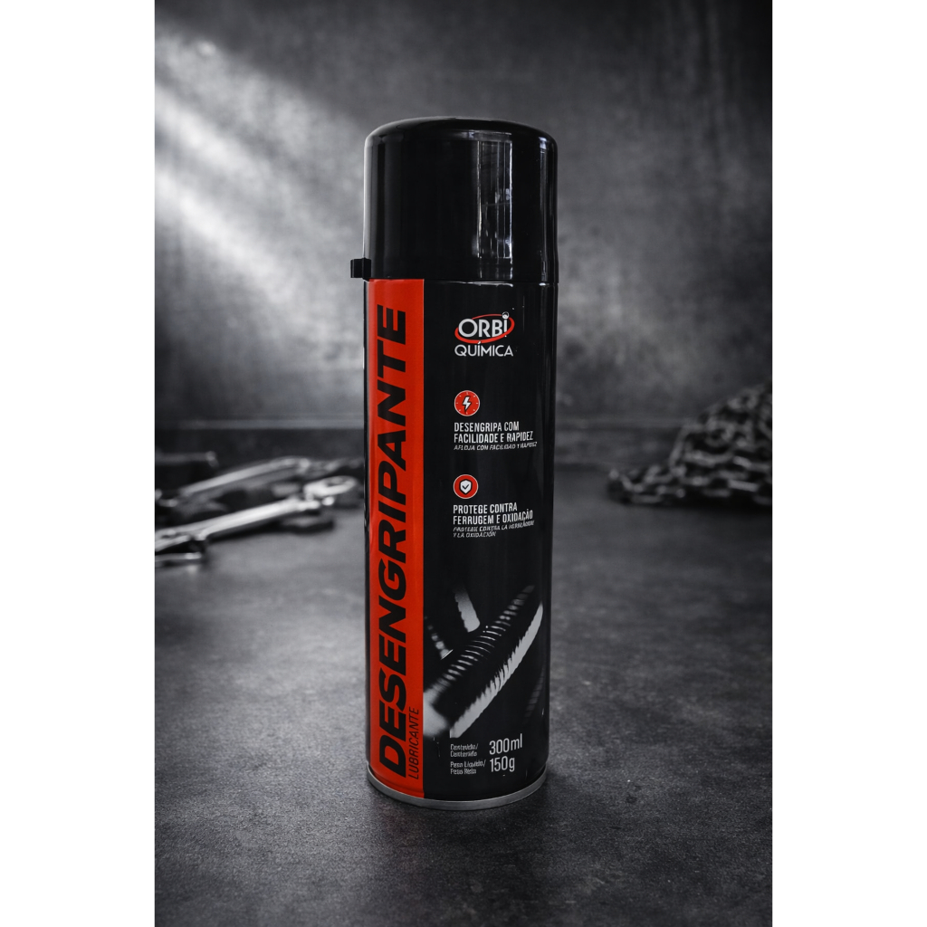 Desengripante ORBI Química em spray, desenvolvido para soltar parafusos, porcas e mecanismos travados com rapidez e eficiência. Sua fórmula de alto desempenho penetra facilmente nas peças, reduz o atrito, elimina rangidos e protege contra ferrugem e oxidação, prolongando a vida útil dos componentes. Indicado para uso em bicicletas, máquinas, ferramentas, equipamentos industriais e manutenção em geral. Embalagem prática de 300 ml, ideal tanto para uso doméstico quanto profissional.