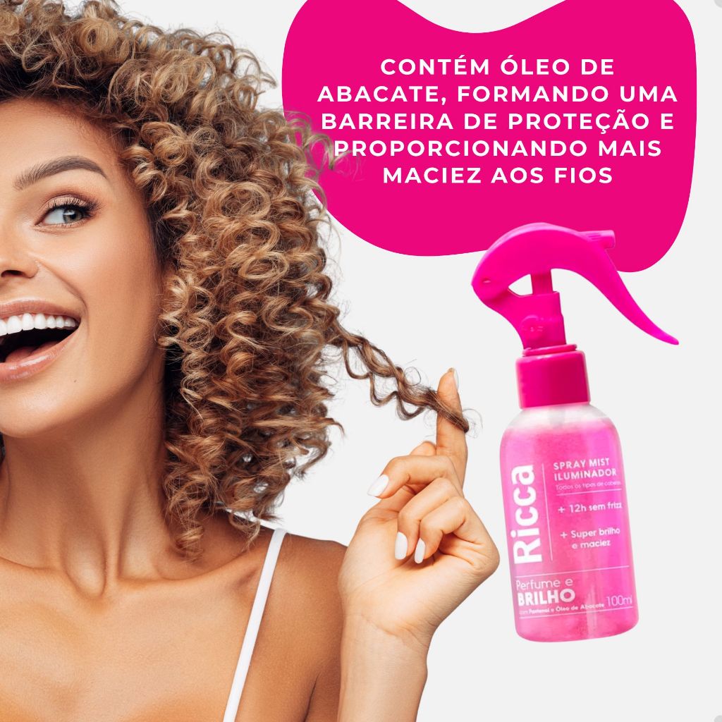 Spray Iluminador Ricca Mist 100ml Perfume Brilho Controle Frizz Hidratação Cabelos sem sulfato