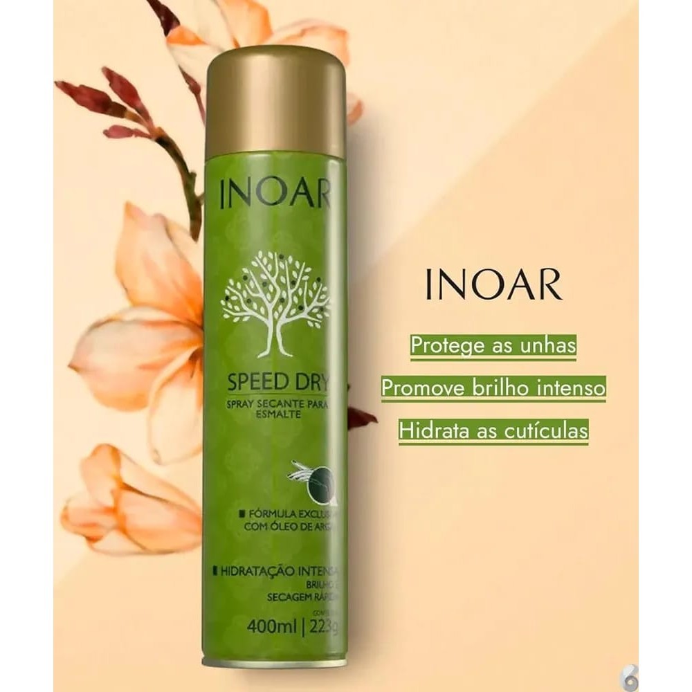 Inoar Speed Dry Spray secante de esmalte. Com ação instantânea, Inoar Speed Dry - Spray Secante para Esmalte 400ml Hisratação Intensa Brilho e Secagem Rápida