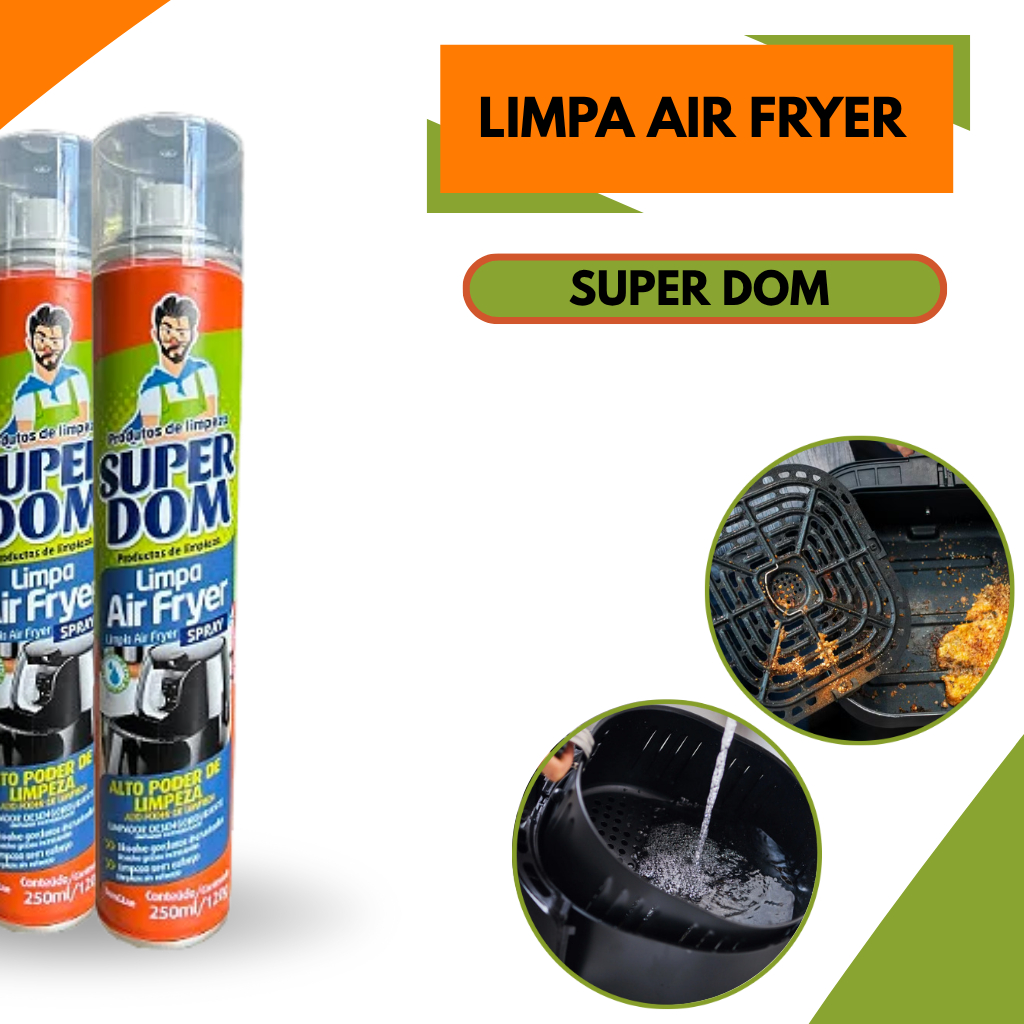 Benefícios do Super Dom Limpa Air Fryer: ✨ Dissolve Gorduras Incrustadas: Remove até as sujeiras mais difíceis, sem esforço. Ideal para quem ama frituras saudáveis!