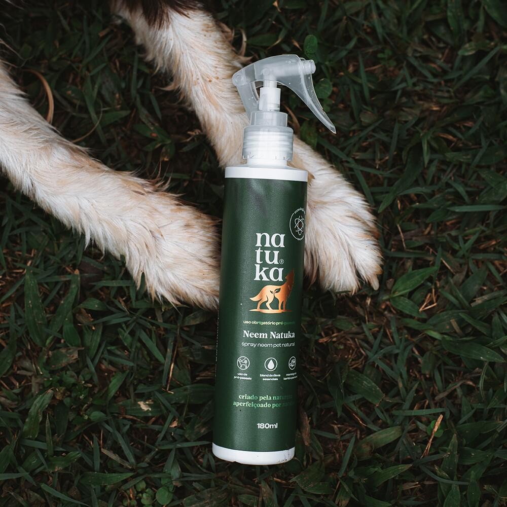 Neem Natuka – Proteção Natural e Cuidado Completo para o Seu PetDescubra a revolução no cuidado do seu pet com o Neem Natuka, uma loção protetora inovadora que utiliza tecnologia nanoencapsulada para garantir ação prolongada e proteção efetiva durante os passeios. Desenvolvida com uma combinação única de óleos naturais e ativos hidratantes, essa fórmula exclusiva oferece cuidados completos para a pele e o pelo do seu pet, ao mesmo tempo em que protege contra insetos, fungos e outros agentes externos.Benefícios do Neem Natuka:Tecnologia Nanoencapsulada: O óleo de neem é preservado em nanocápsulas, sendo liberado gradualmente quando entra em contato com o calor da pele do animal. Isso evita a oxidação do óleo e prolonga sua ação, reduzindo a necessidade de reaplicações frequentes.Uso Pré-Passeio: Aplique uma vez ao dia, preferencialmente antes do passeio, e desfrute de uma proteção contínua. Caso o animal tenha contato com água, vegetação ou outros pets, reaplique conforme necessário.Proteção Calmante e Natural: A fórmula conta com óleos de neem, melaleuca, calêndula, capim-limão, eucalipto, lavanda e alecrim, que juntos possuem propriedades protetoras, anti-fúngicas, calmantes e purificadoras. Proporcionando ao seu pet uma sensação de conforto e proteção durante o passeio.Hidratação e Desembaraço: Com manteiga de karité e pantenol, a loção hidrata, nutre e regenera a pele e o pelo do animal, tornando a escovação mais fácil e ajudando a manter a pelagem brilhante e saudável.Sem Amarelamento do Pelo: Ao contrário de outros produtos de neem, o Neem Natuka não deixa o pelo amarelado. Sua fórmula densa e esbranquiçada oferece cuidados eficazes sem comprometer a aparência da pelagem.Baixo Incômodo Olfativo: O frescor natural da sua fragrância é resultado de uma cuidadosa combinação de óleos essenciais, garantindo um aroma suave e agradável, com baixo incômodo olfativo para os cães.Informações do Produto:Conteúdo: 180mlCuidados: Armazenar em ambiente fresco e ao abrigo da luz.Transforme os passeios do seu pet em momentos ainda mais agradáveis e protegidos com o Neem Natuka. Uma proteção natural, hidratante e calmante para o seu melhor amigo!